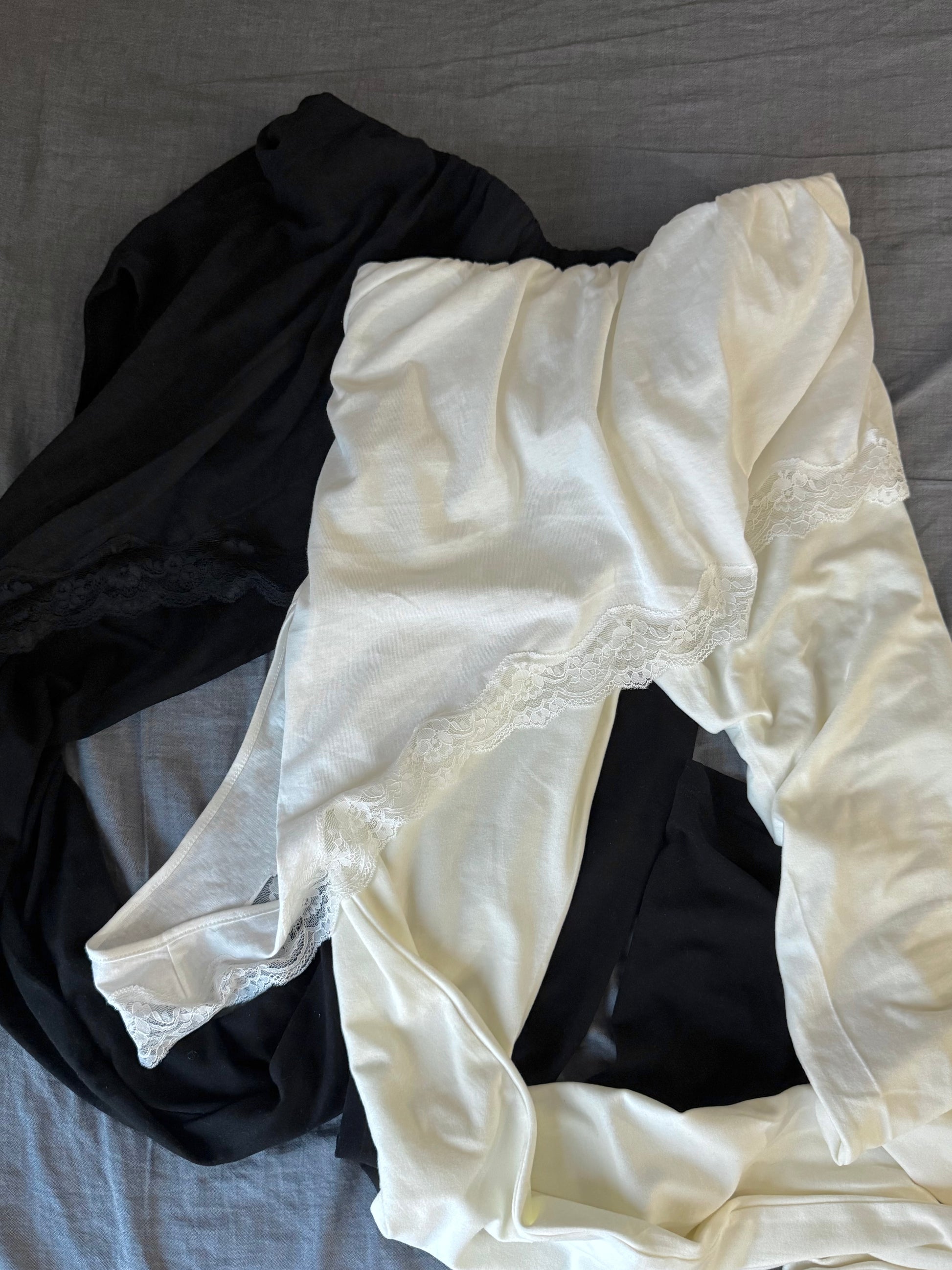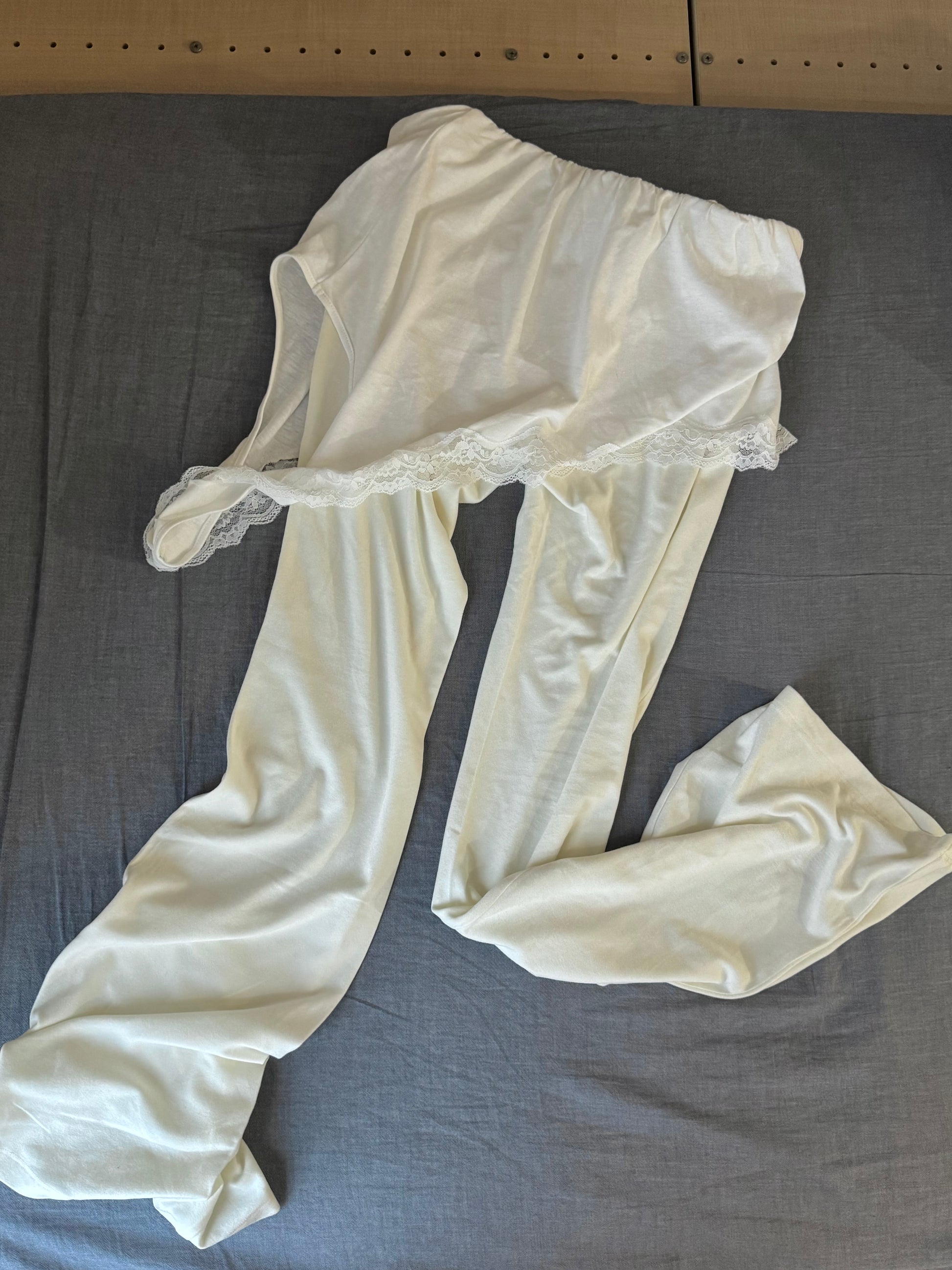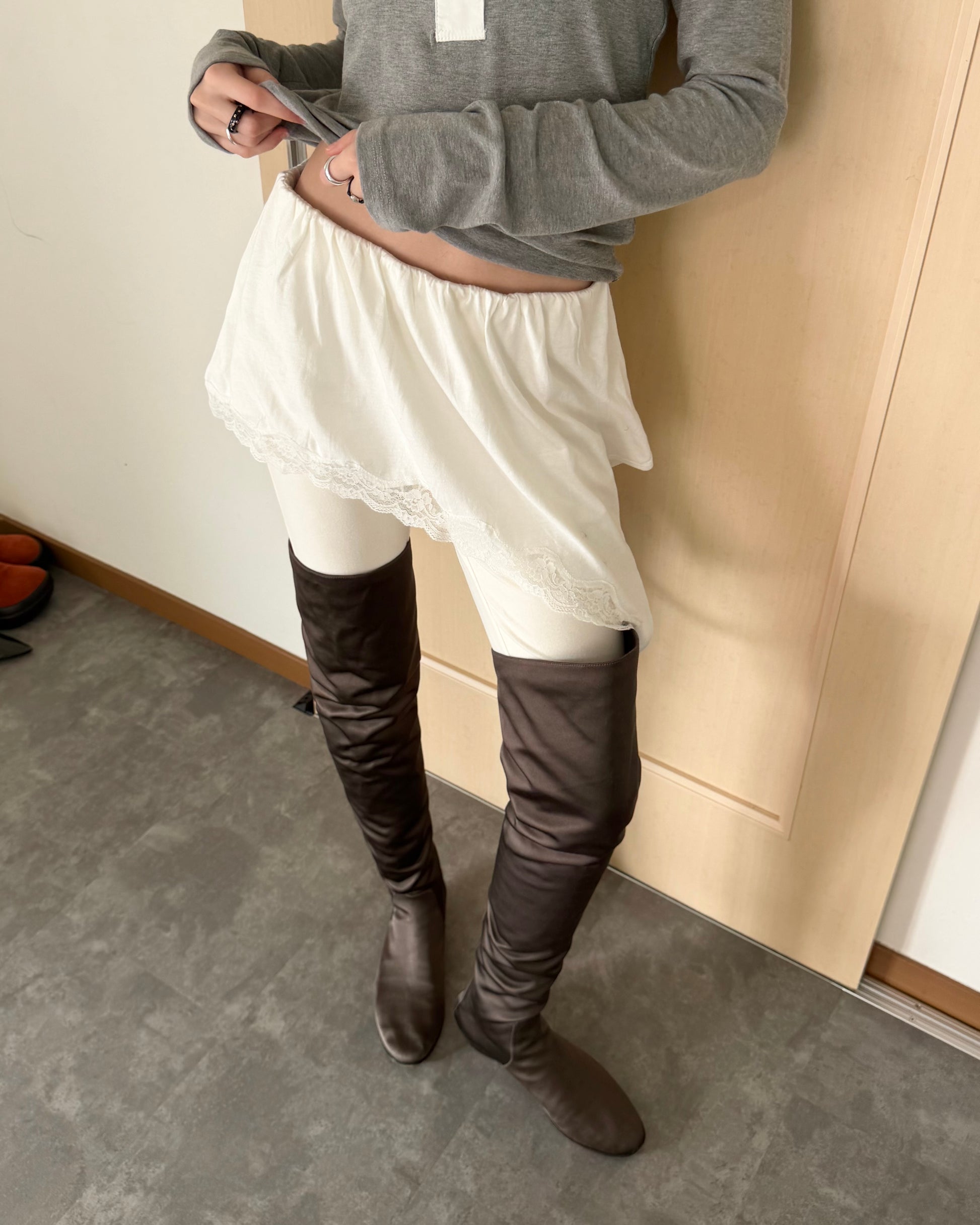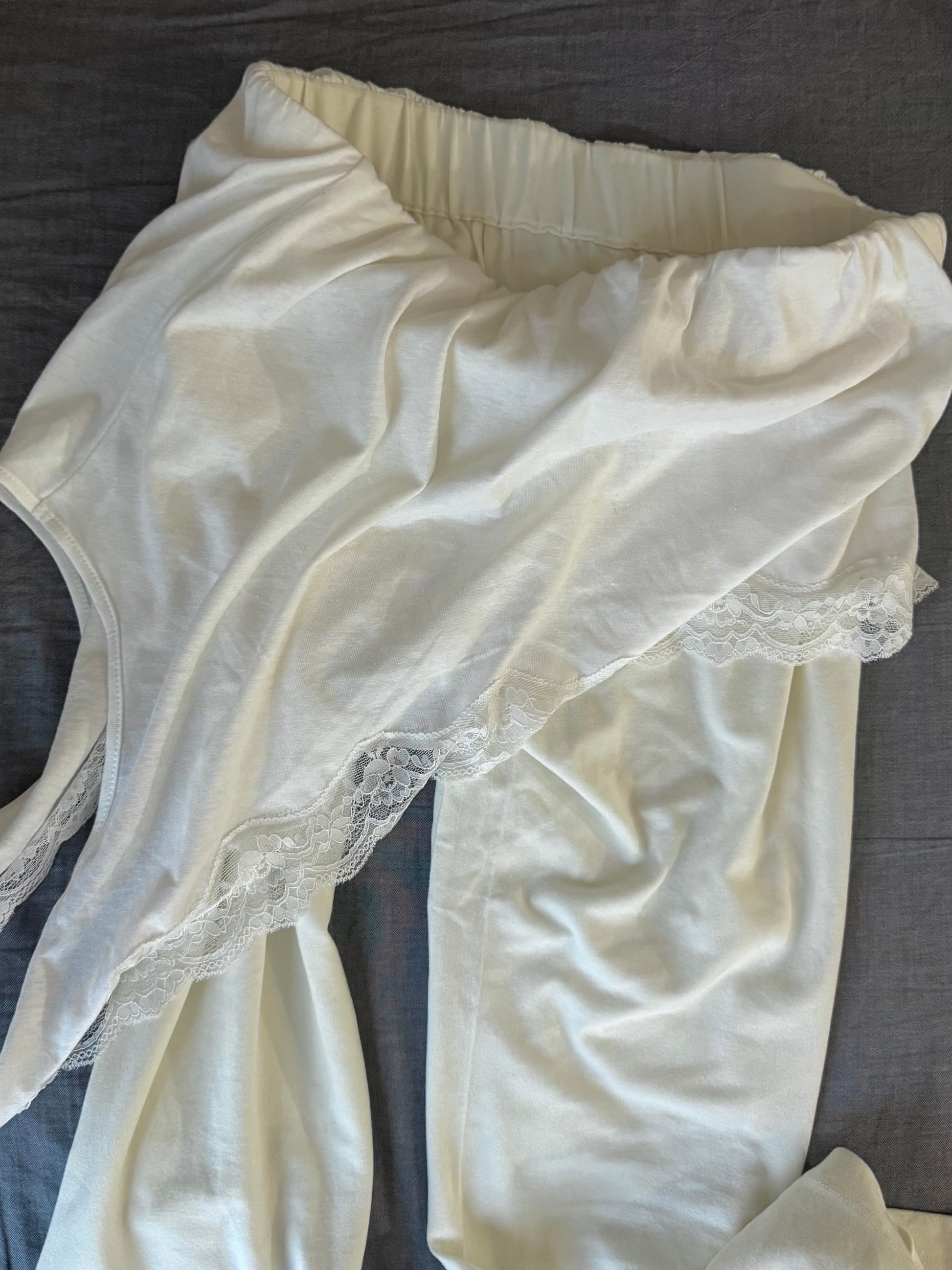 レイヤードデザインが印象的な、ランジェリーライクなリラックスパンツ。