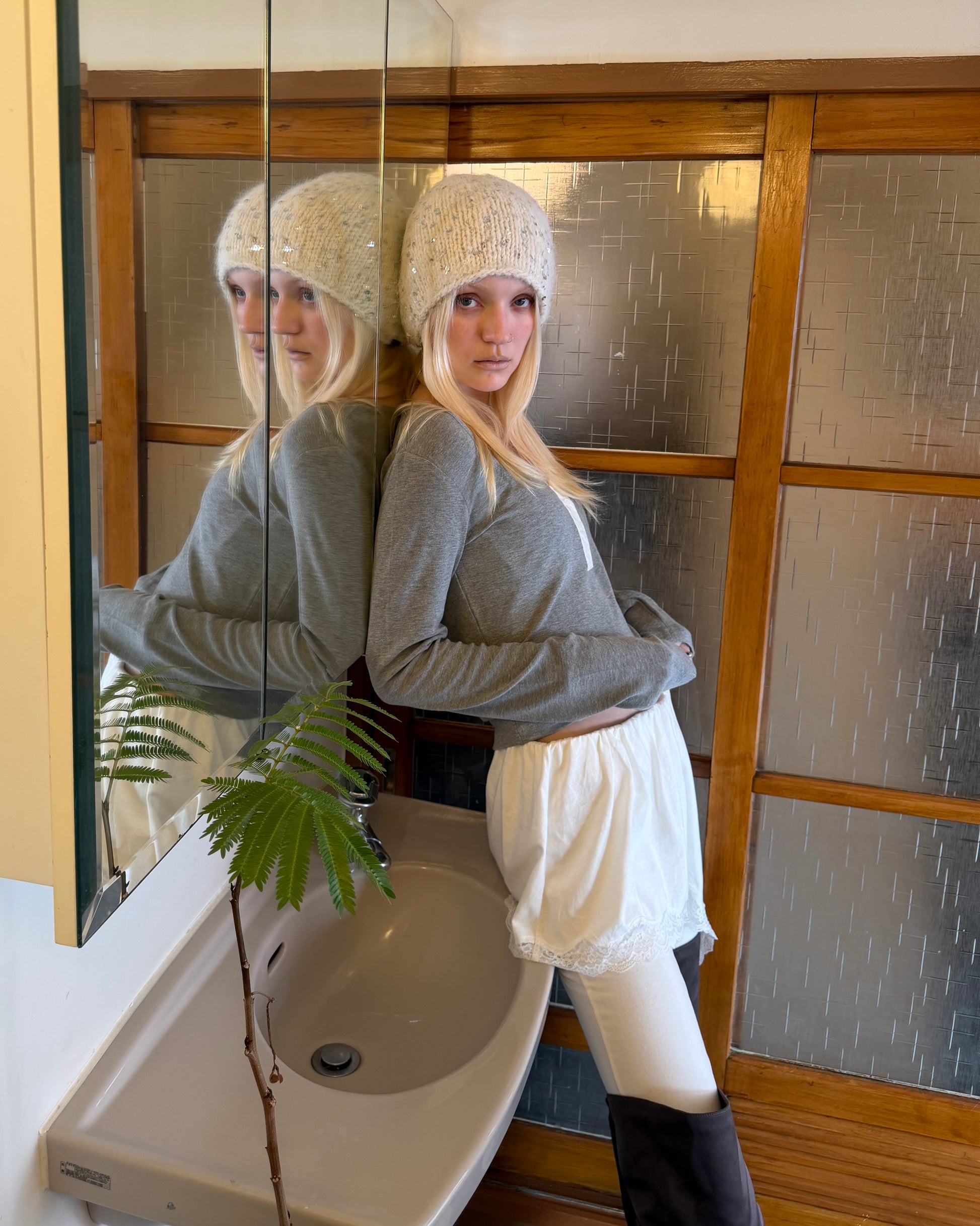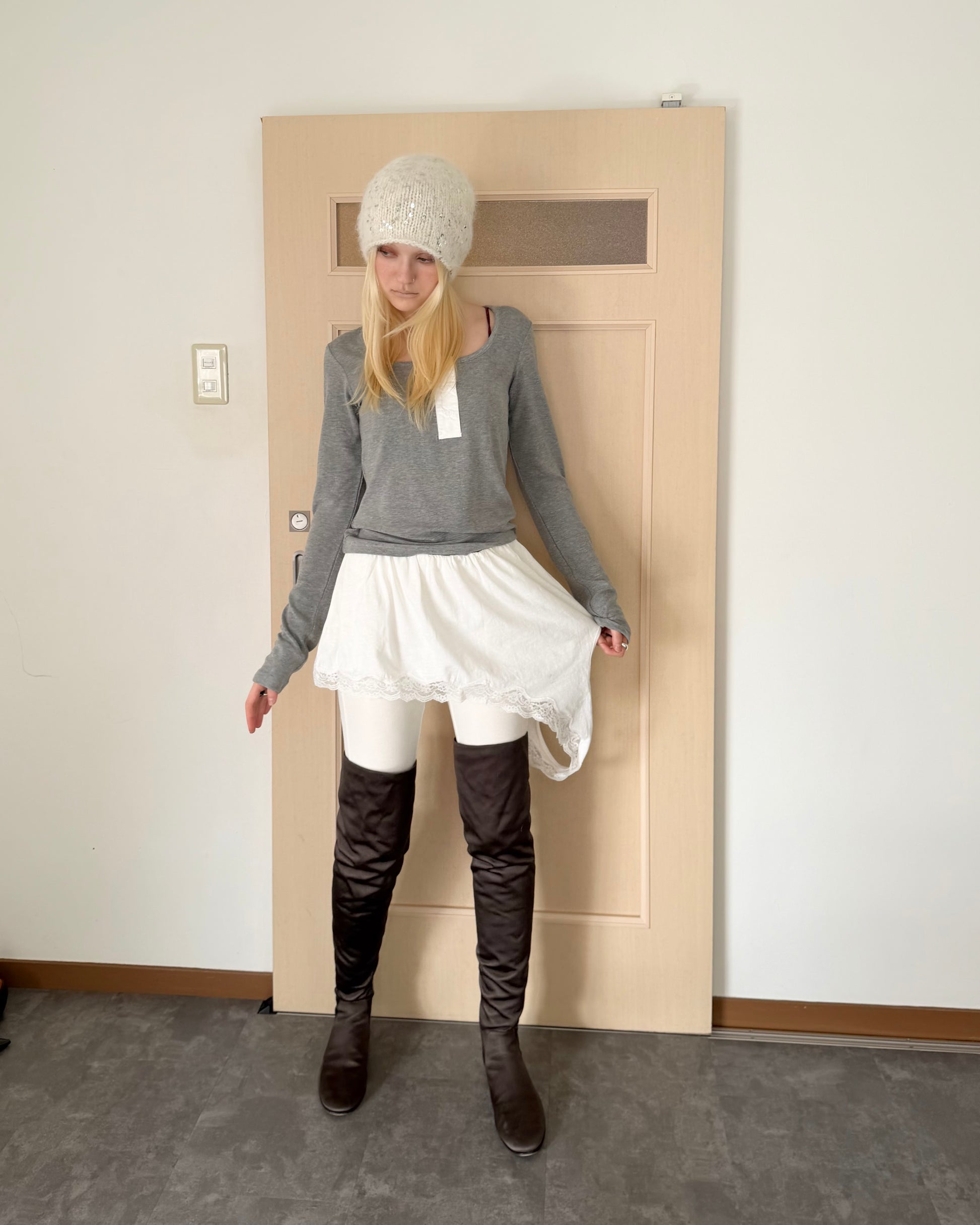 繊細で女性らしいディテールを取り入れつつ、どこかアンニュイなムードを感じさせる1本。