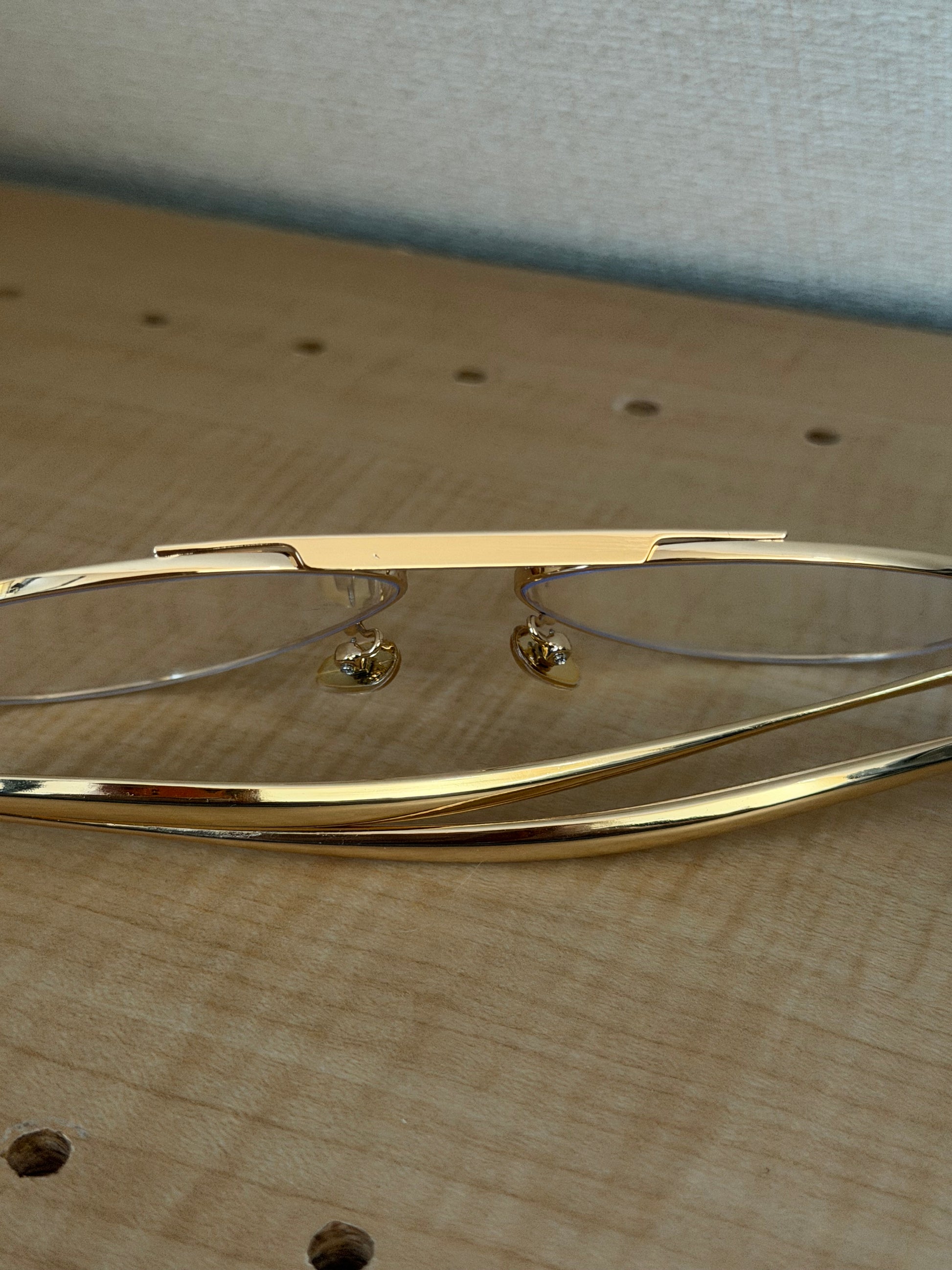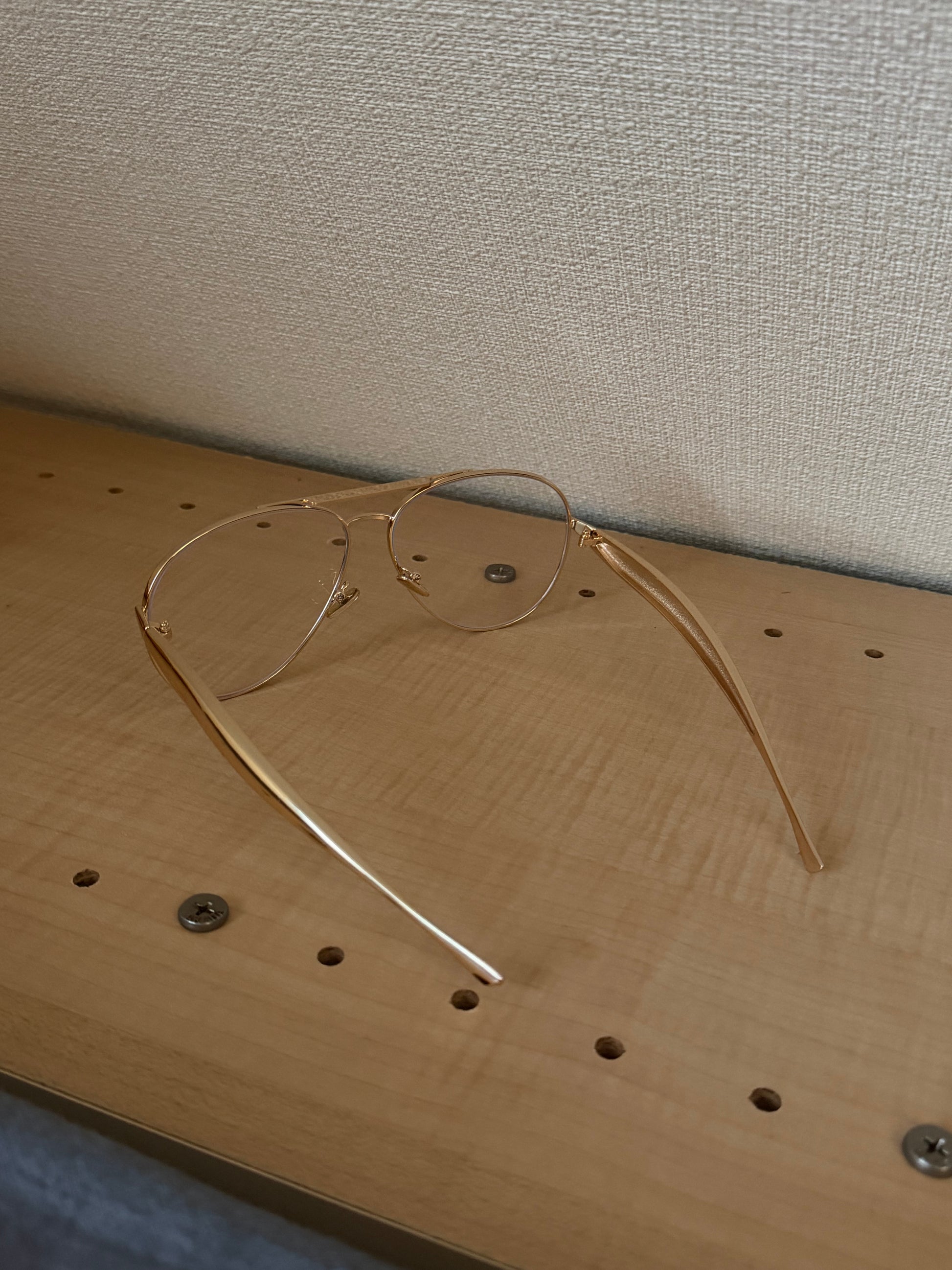 アクセサリーのようなゴールドのテンプル部分が目を惹くメガネ。