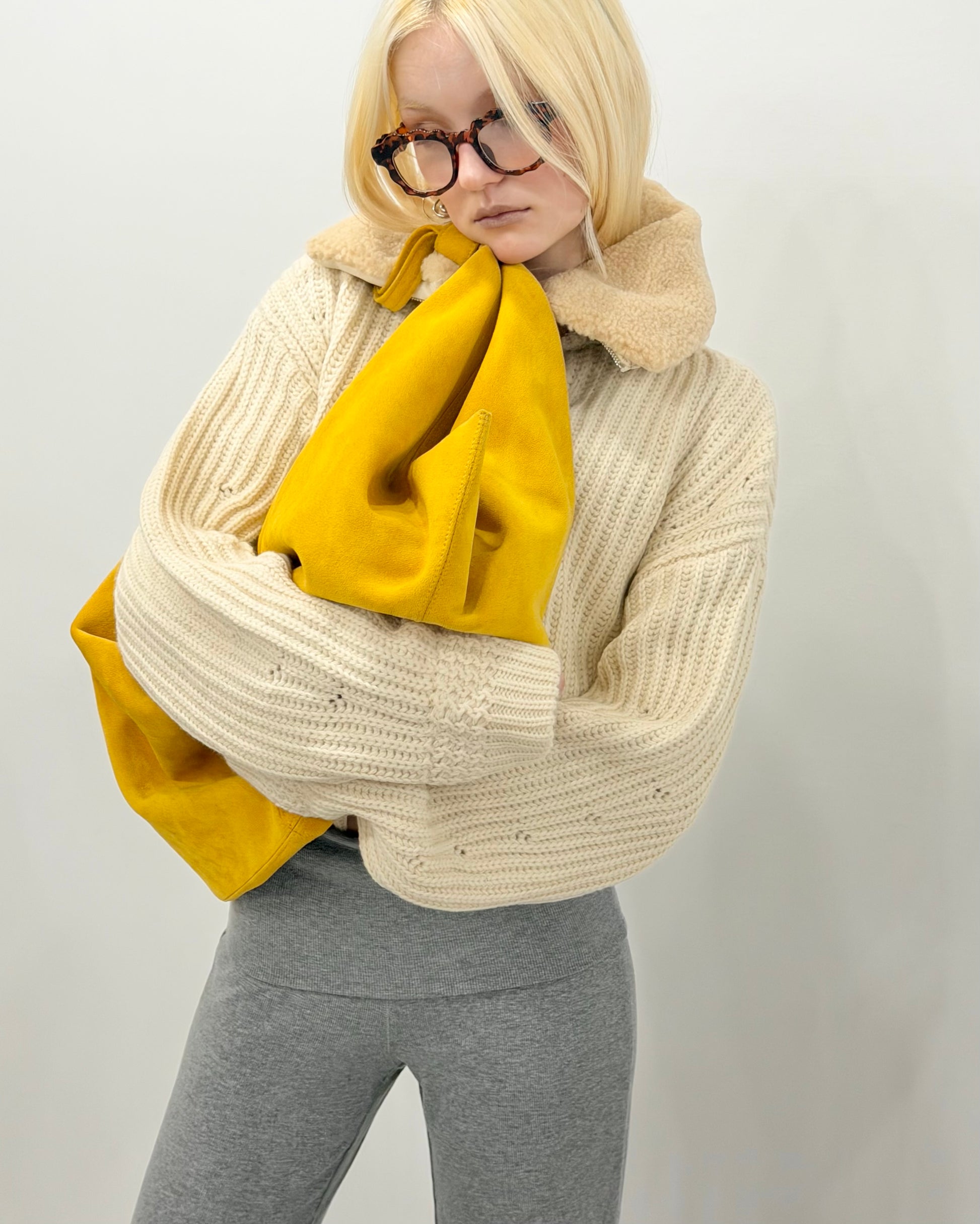 Cream knit blouson