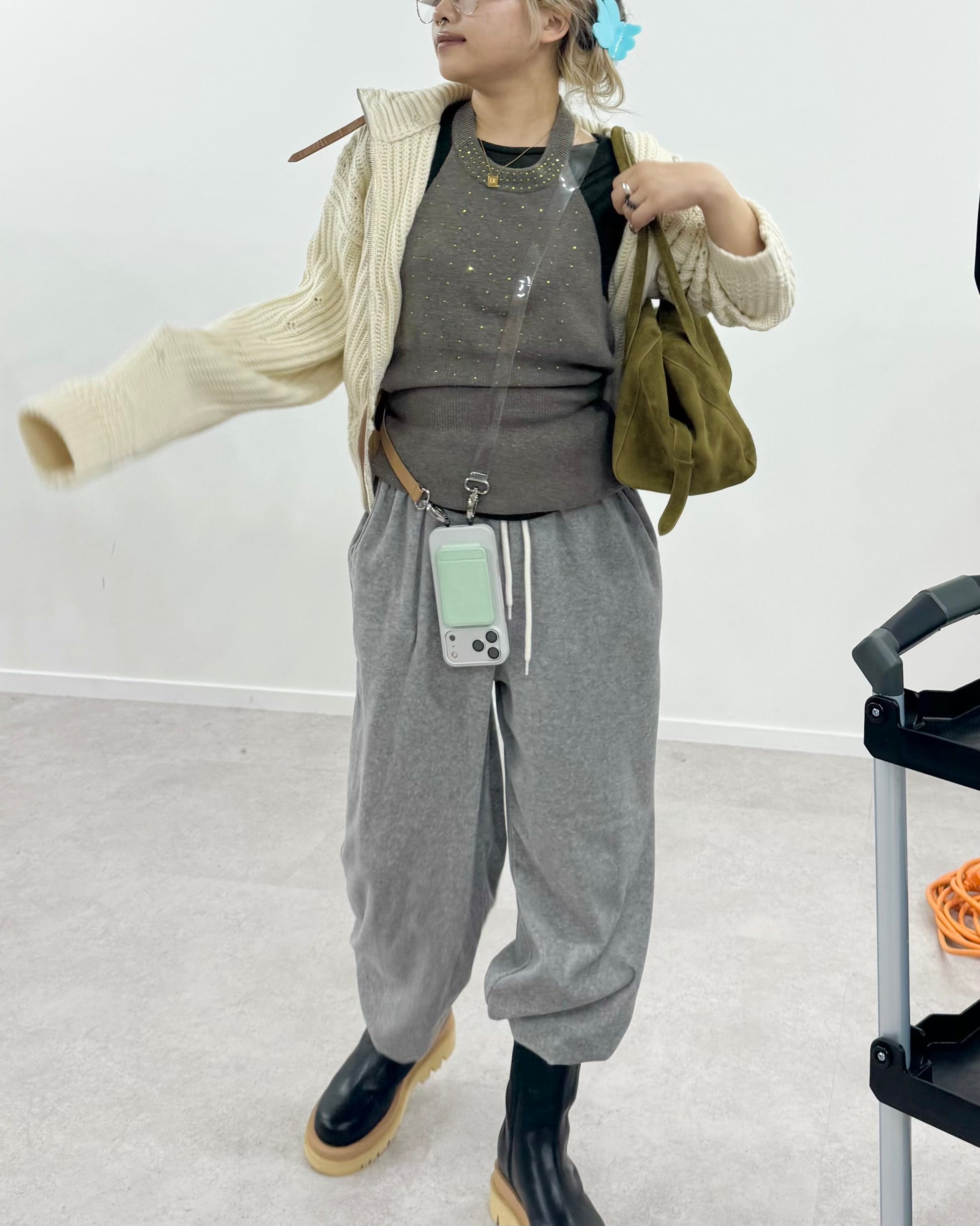 襟元のボアは取り外し可能なので、寒い時期はウォームに、外せば春先までロングシーズンに活躍します◎