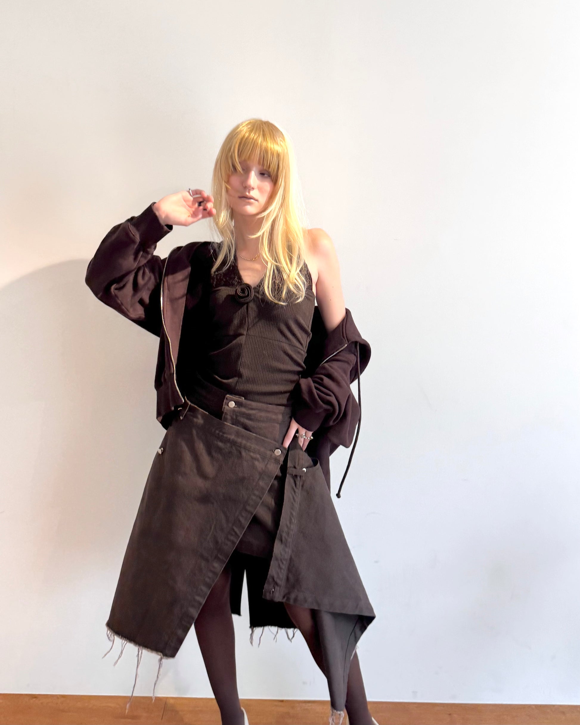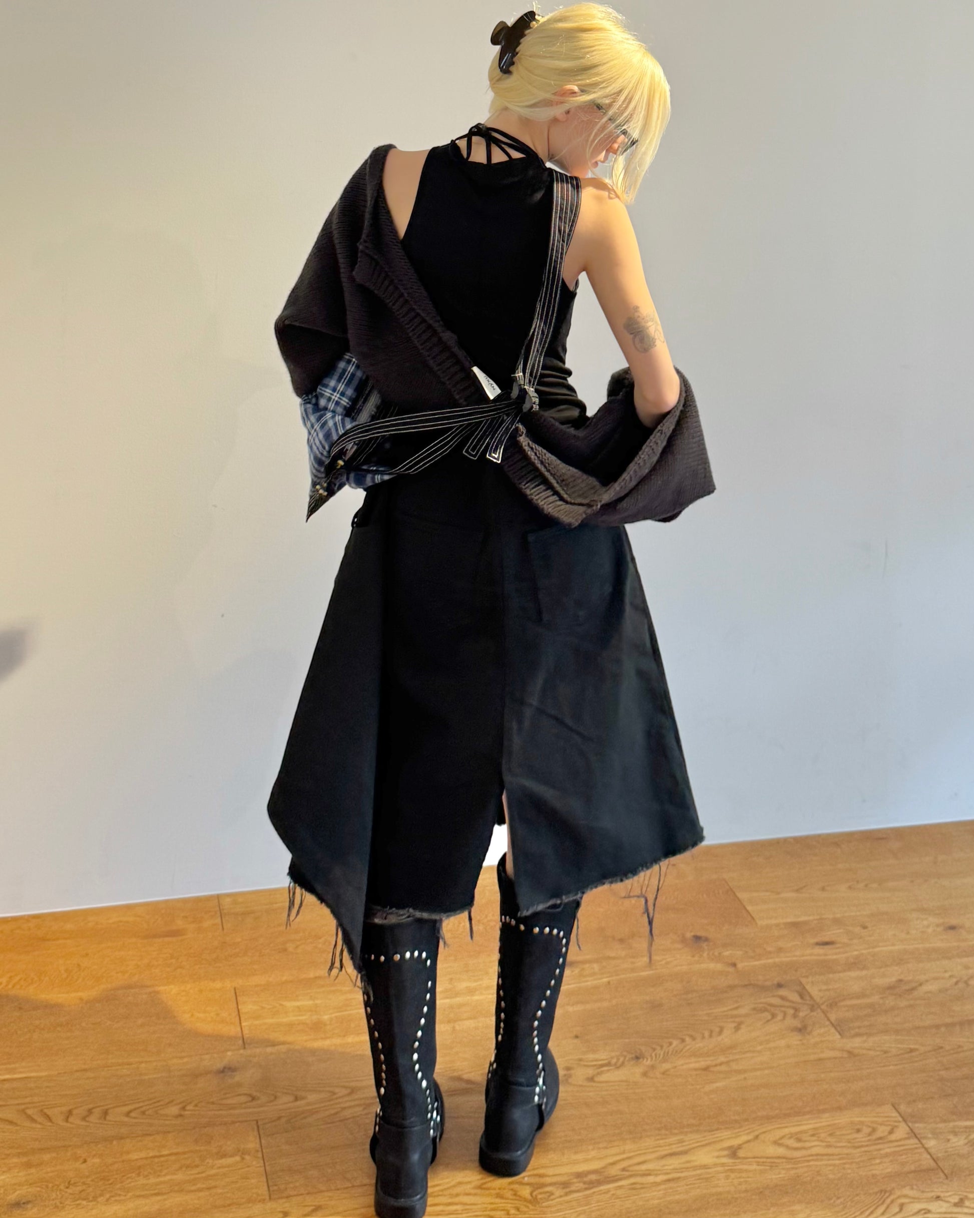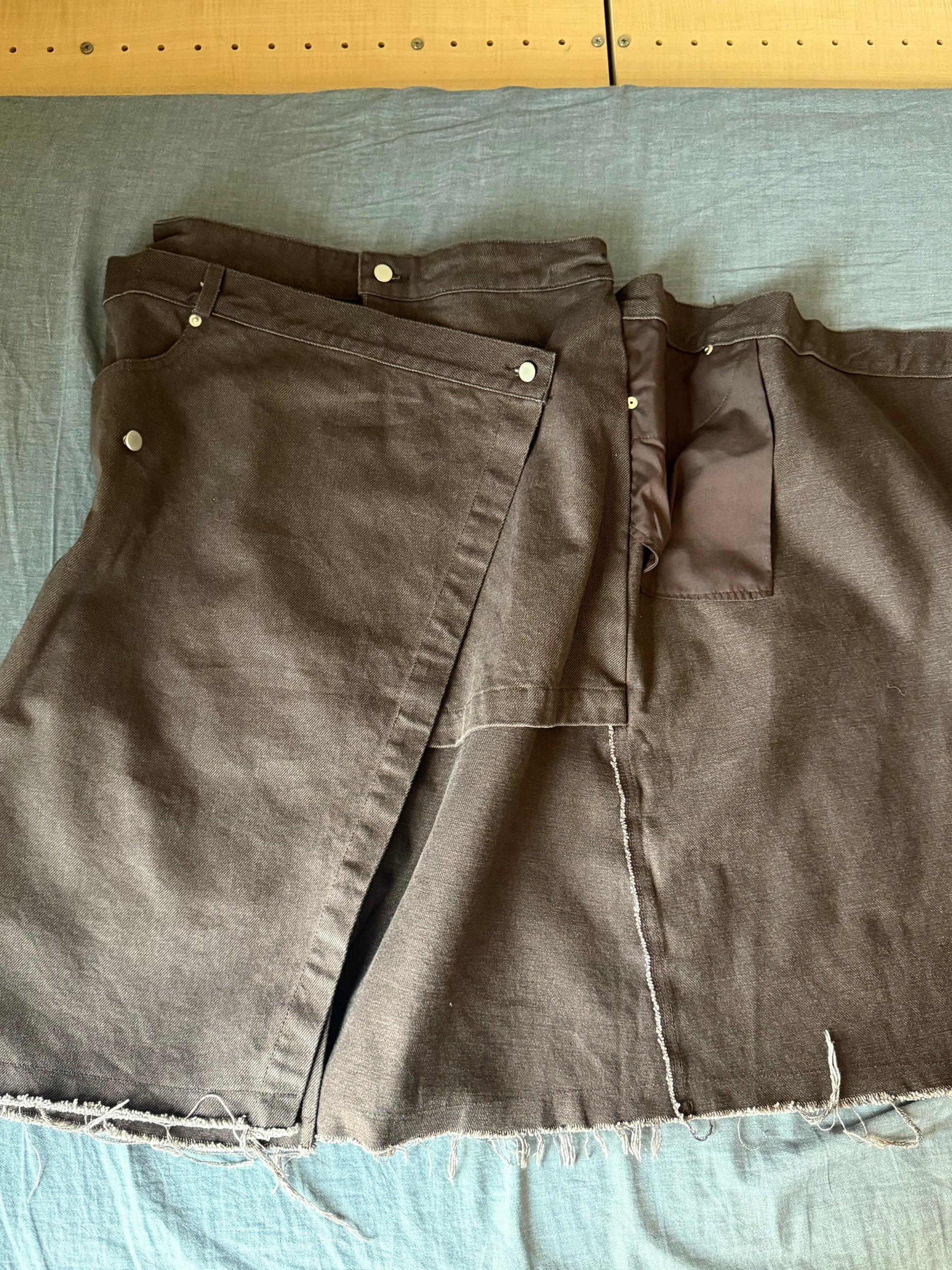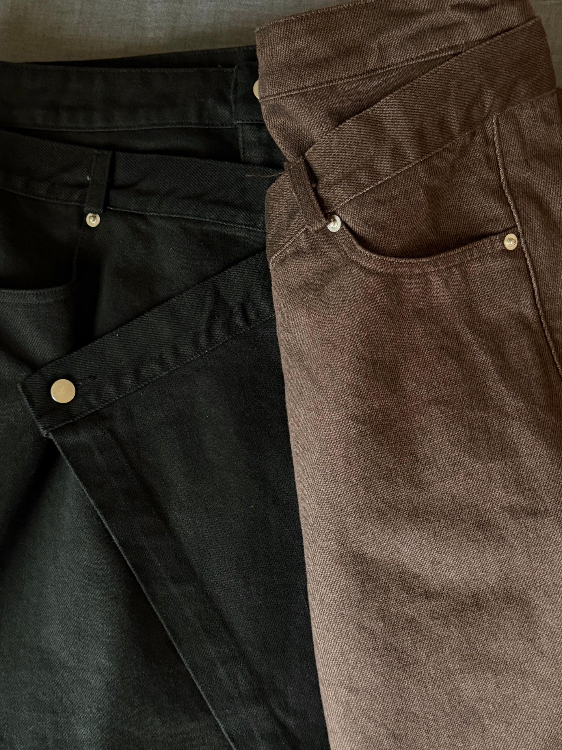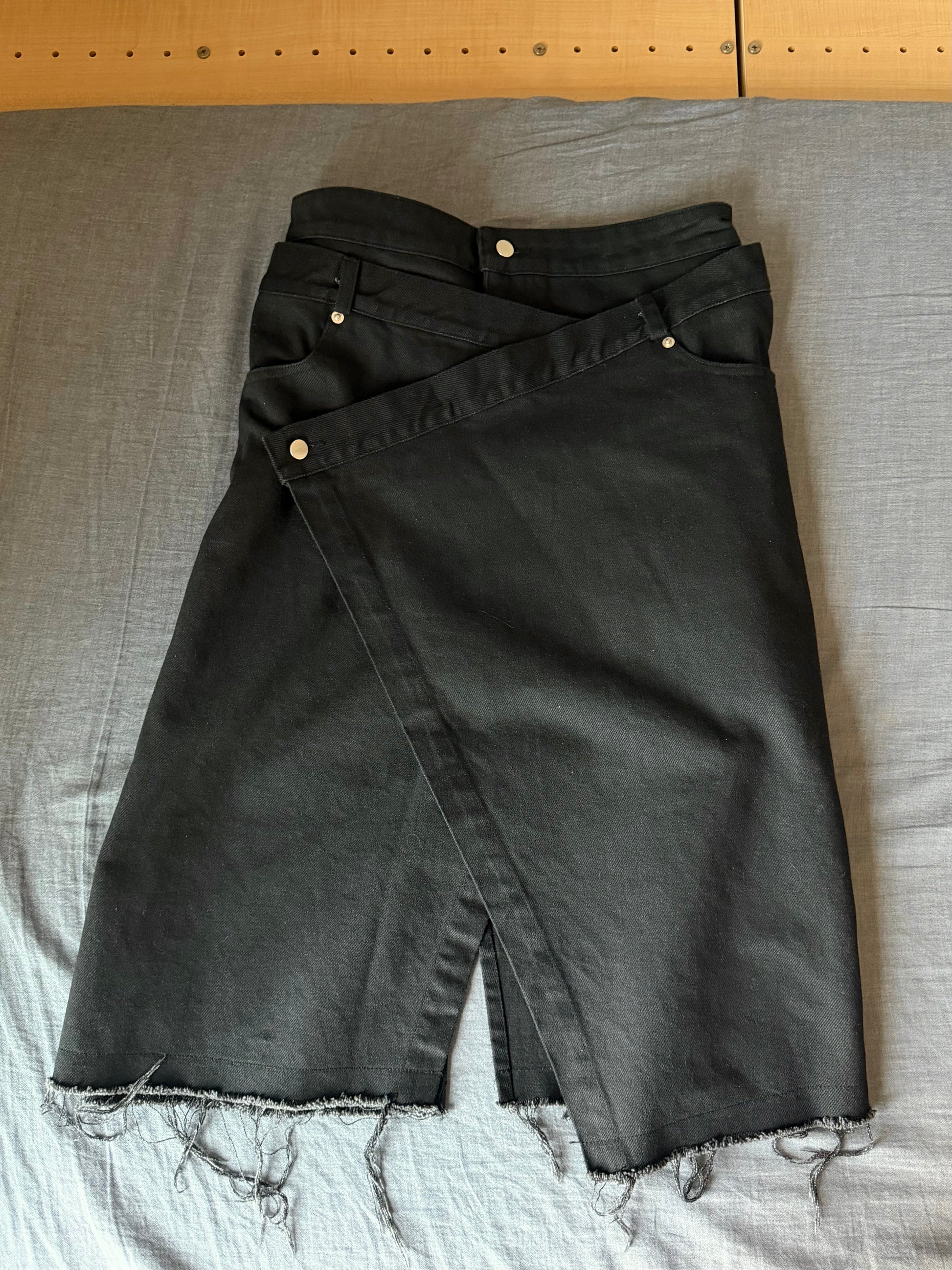 スカートのようなフェミニンなシルエットの巻き型デザインスカート。