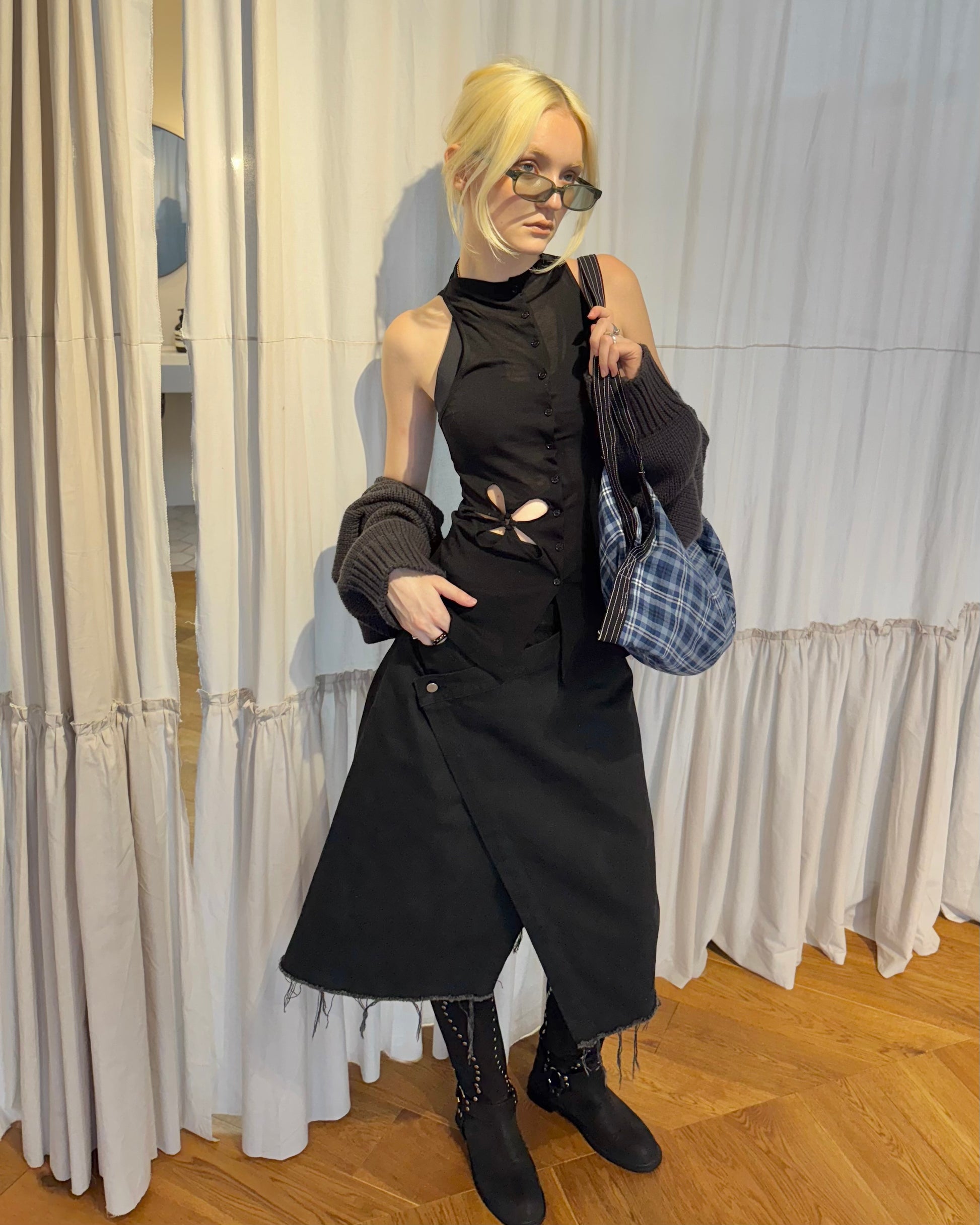 フロント部分がラップ風になっており、カジュアルながらも上品な印象を演出します。
