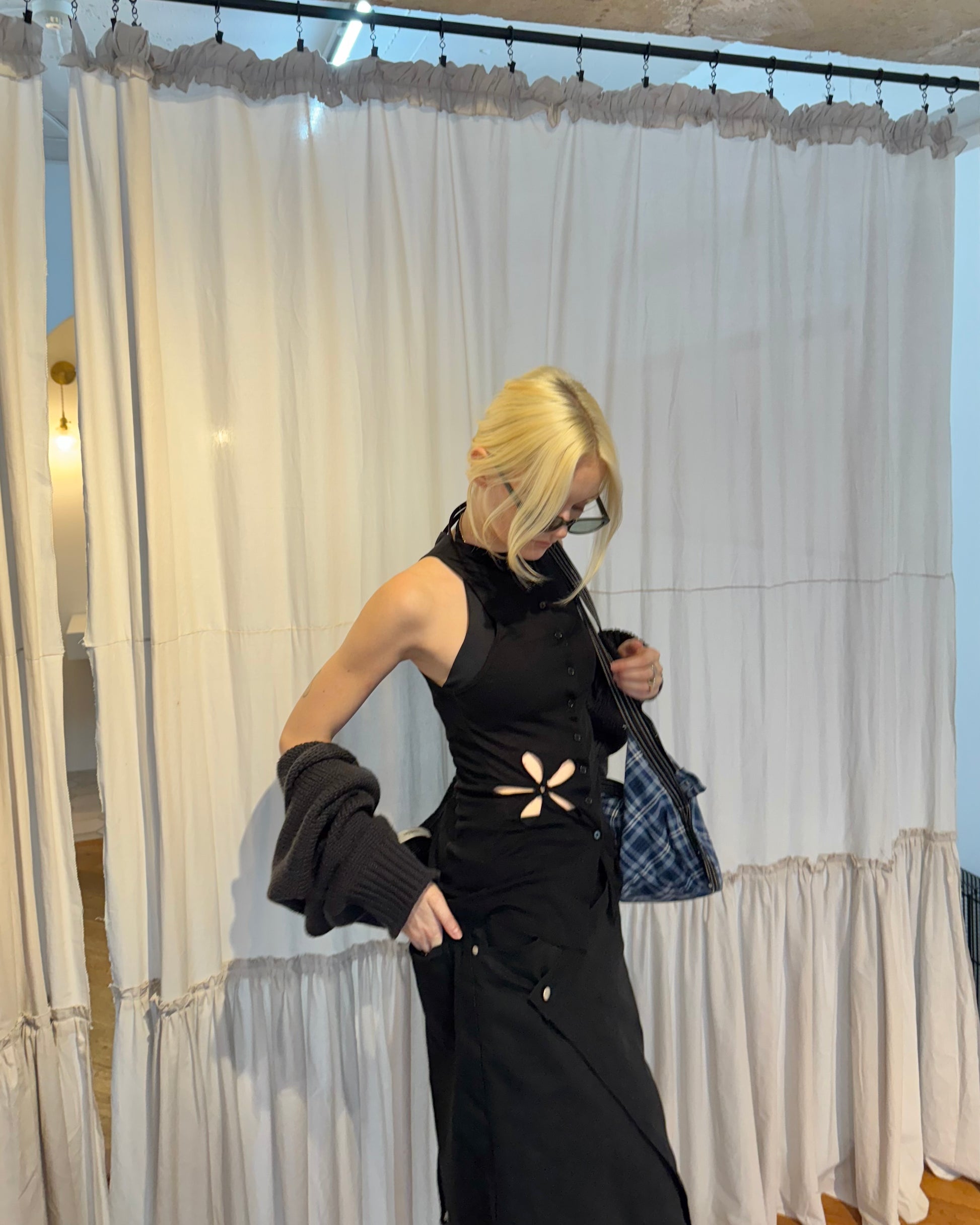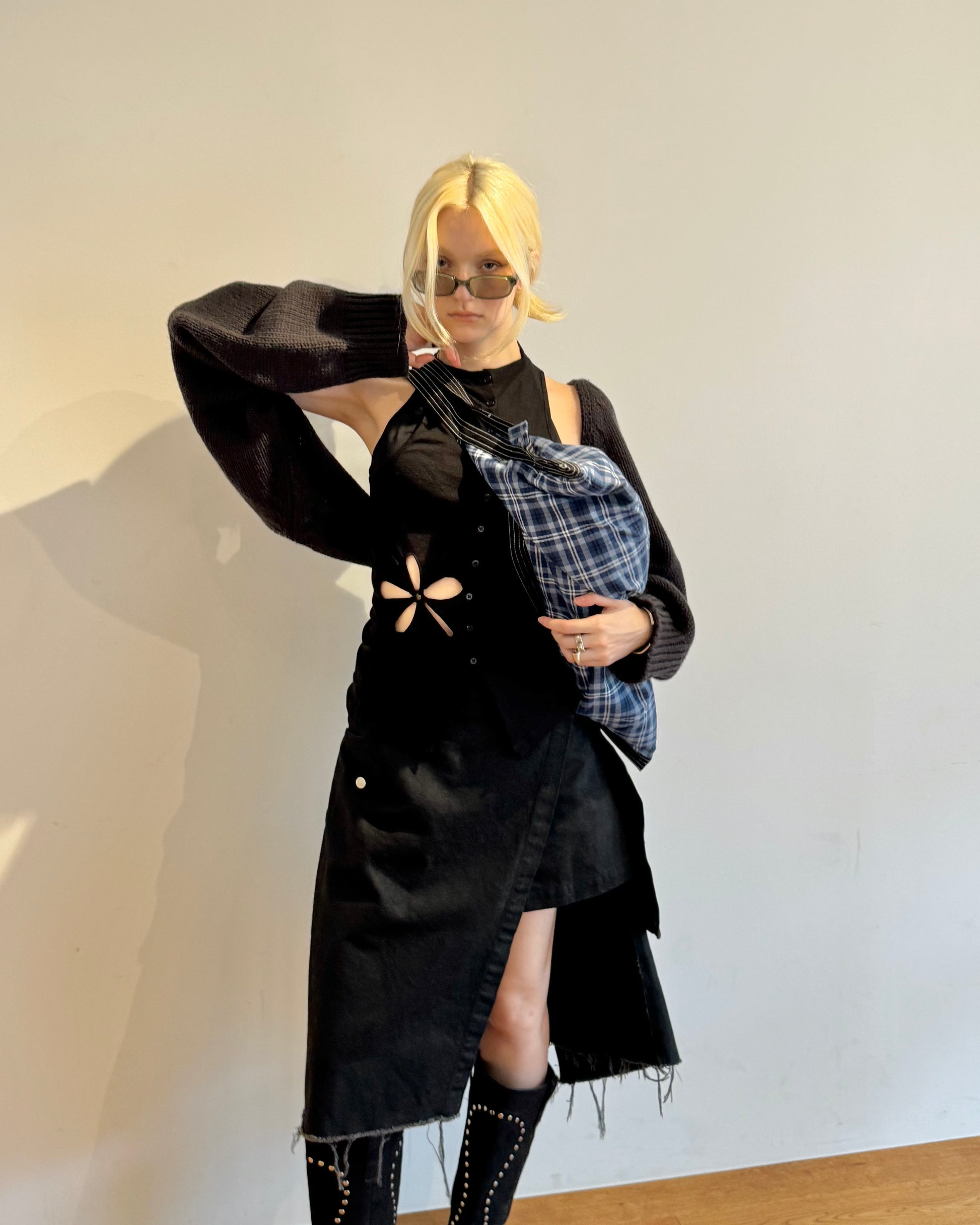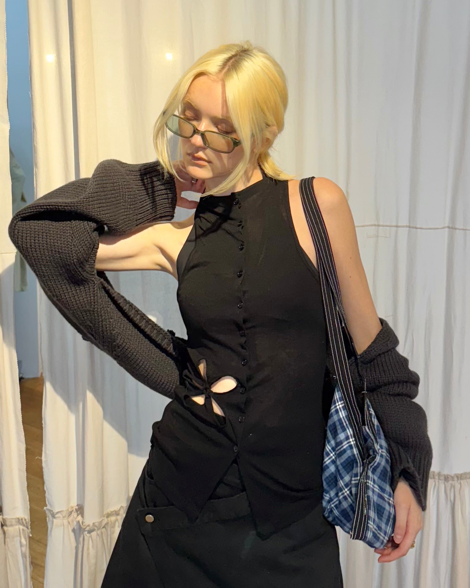 NYXUのアイコン"Full of holes"のフラワー型モチーフをタンクトップに落とし込んだデザイン。