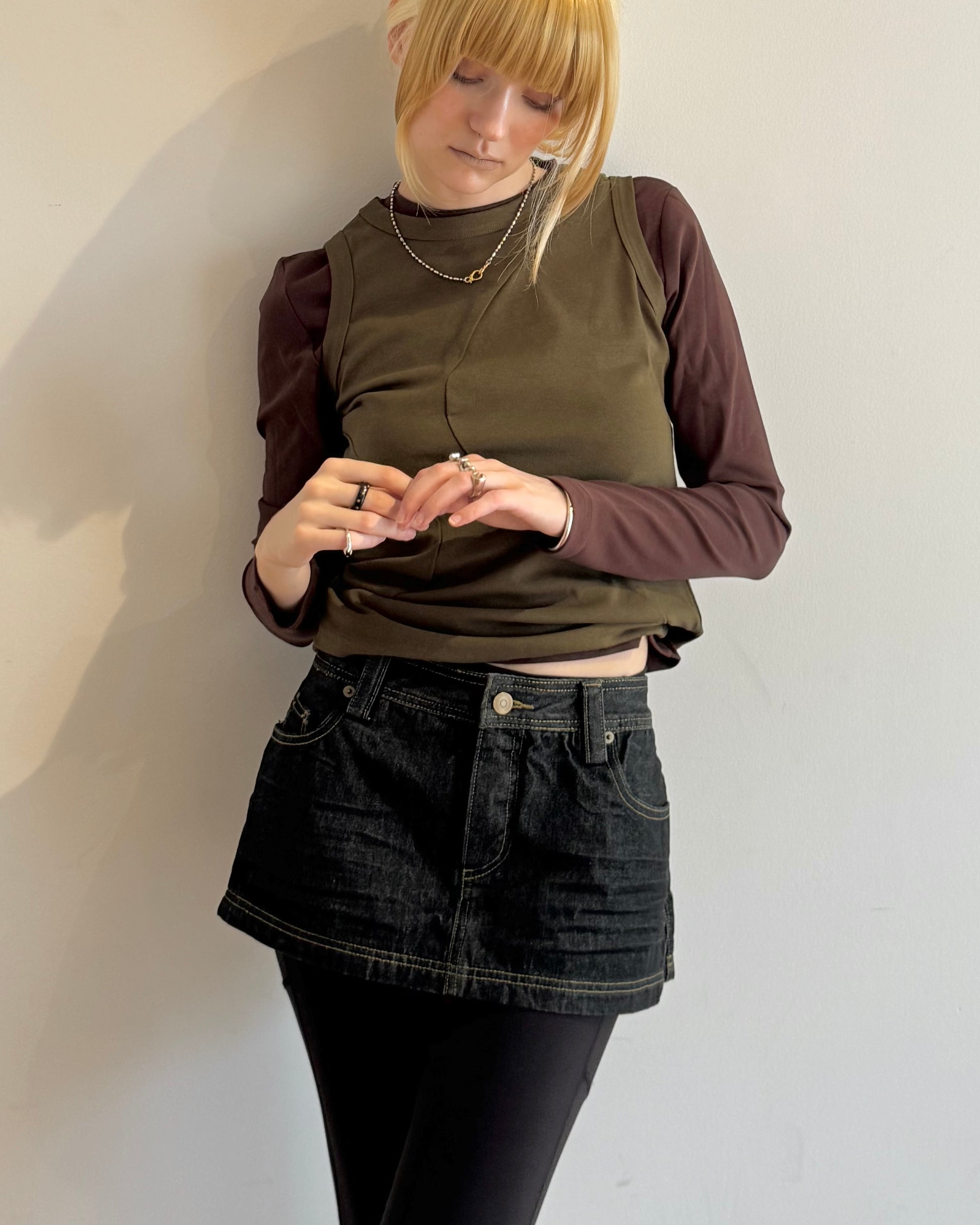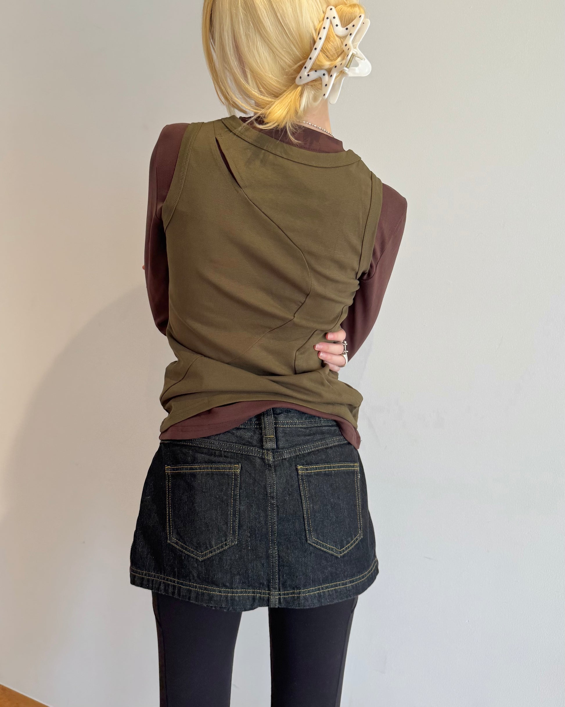シンプルなロンTとタンクトップのレイヤードTシャツ。