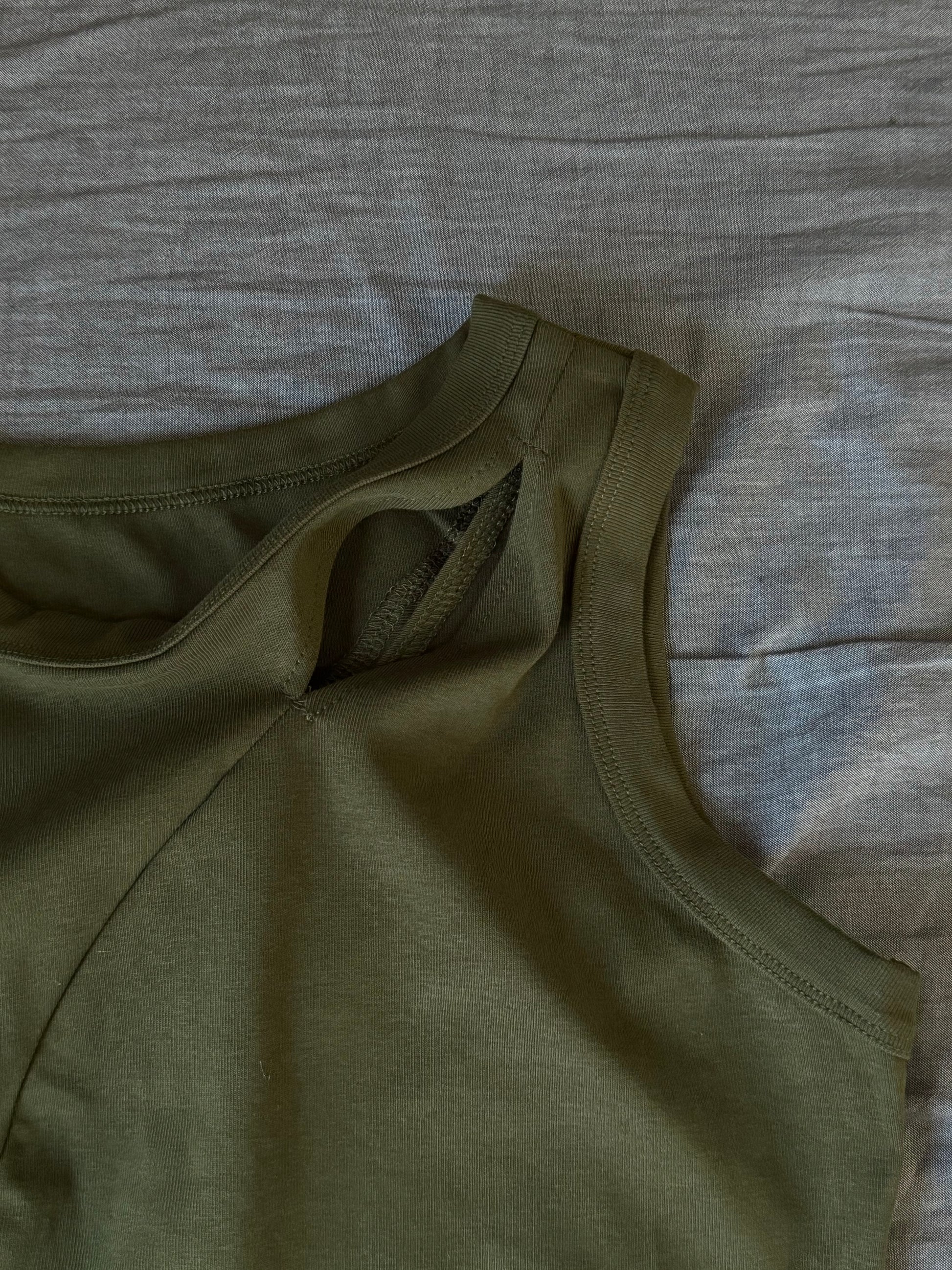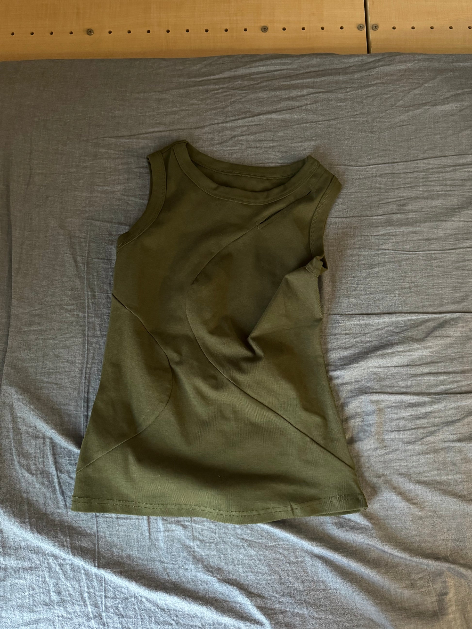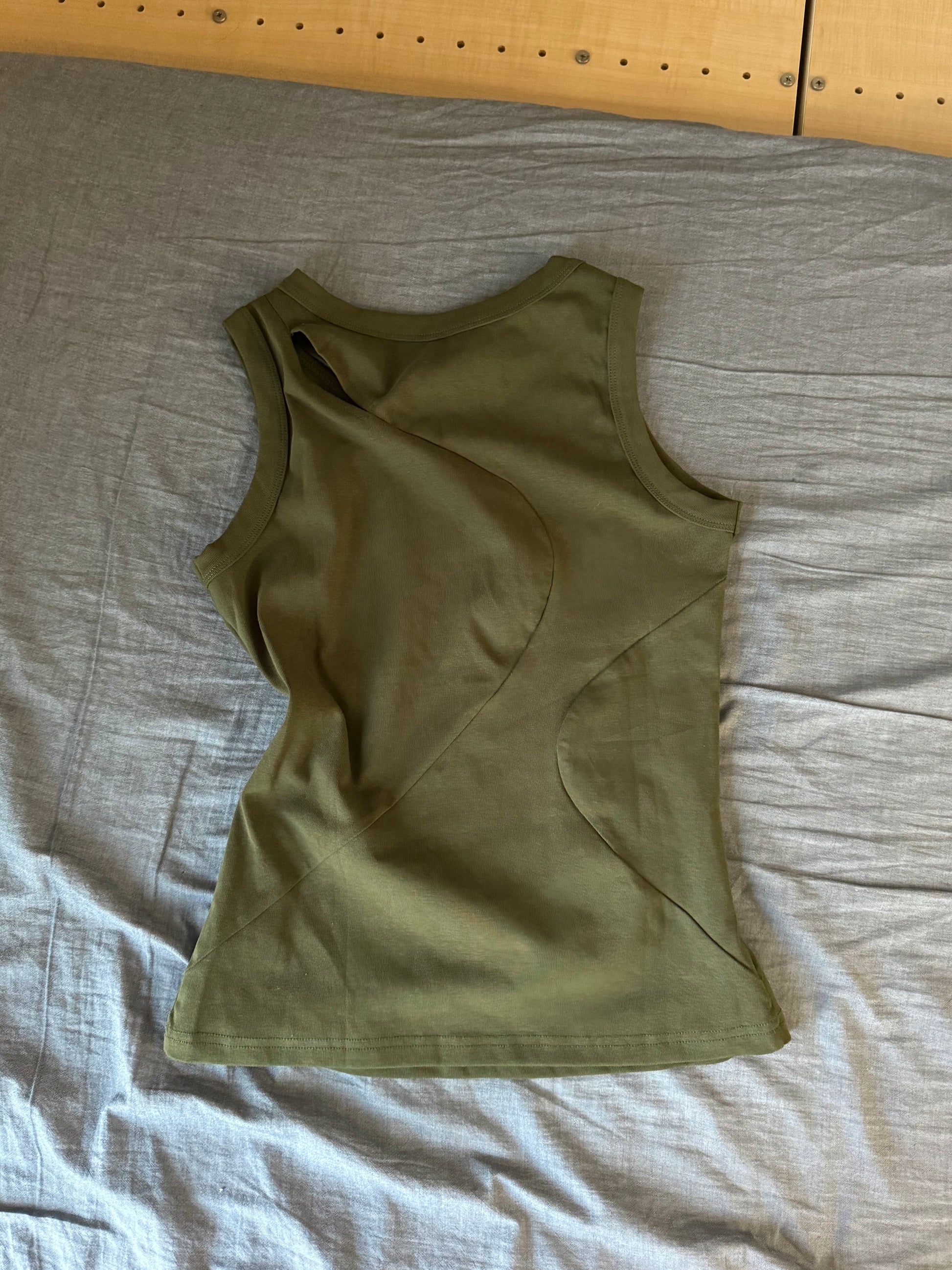 タンクトップのウェーブ切り替えデザインもアクセントに。