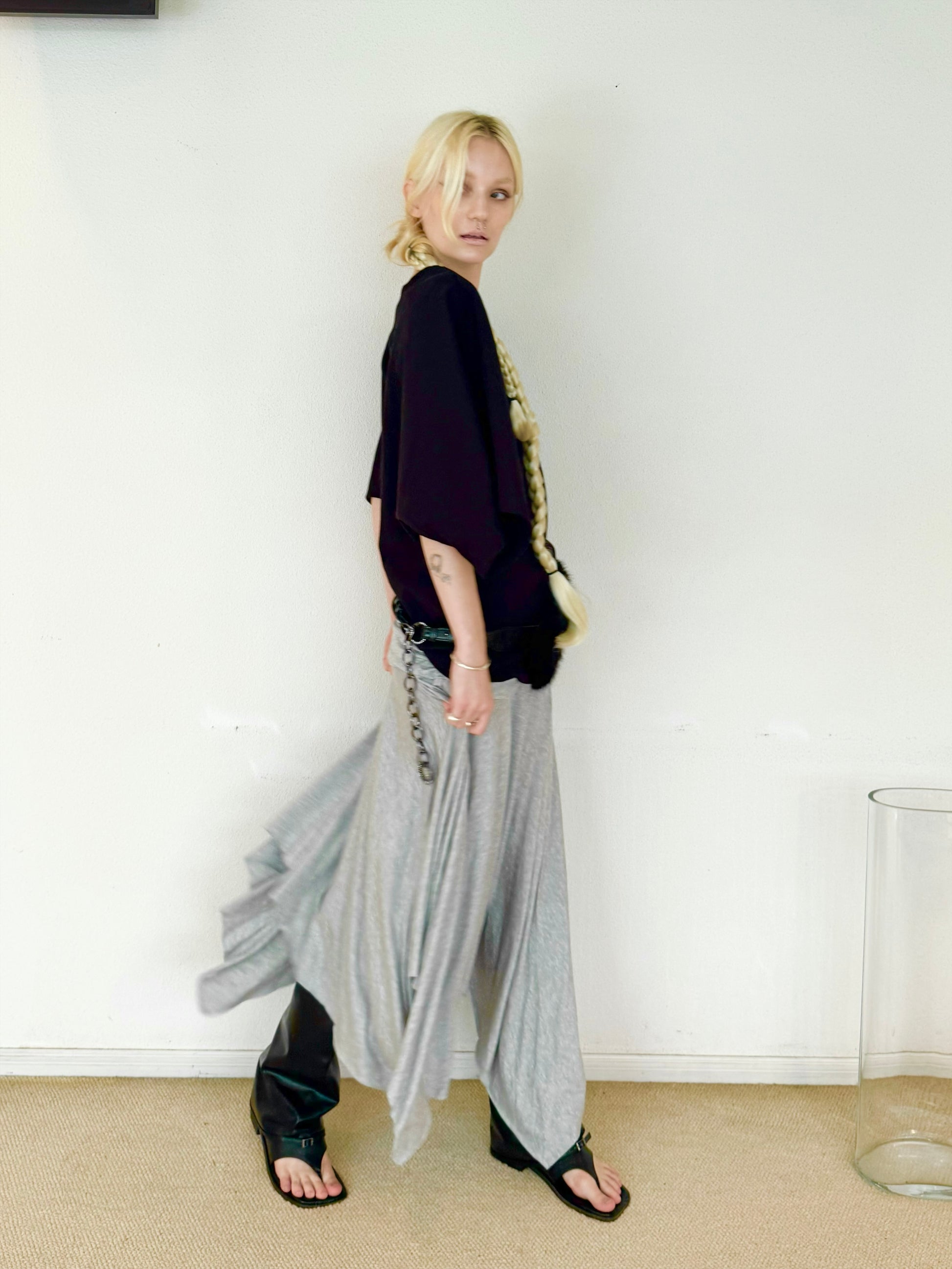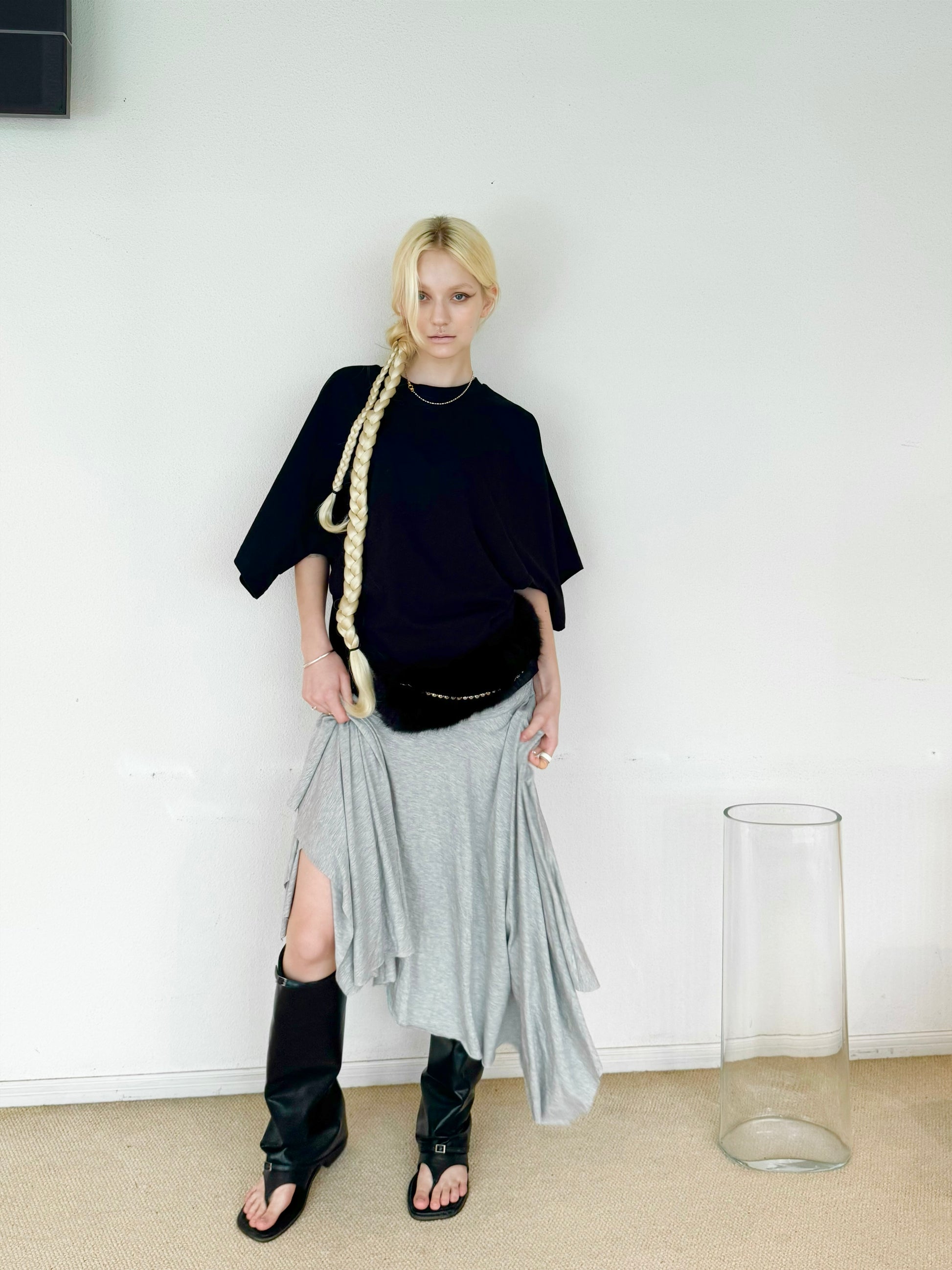 落ち感のあるとろみ素材が動くたびに美しく揺れて、さりげなく存在感に。