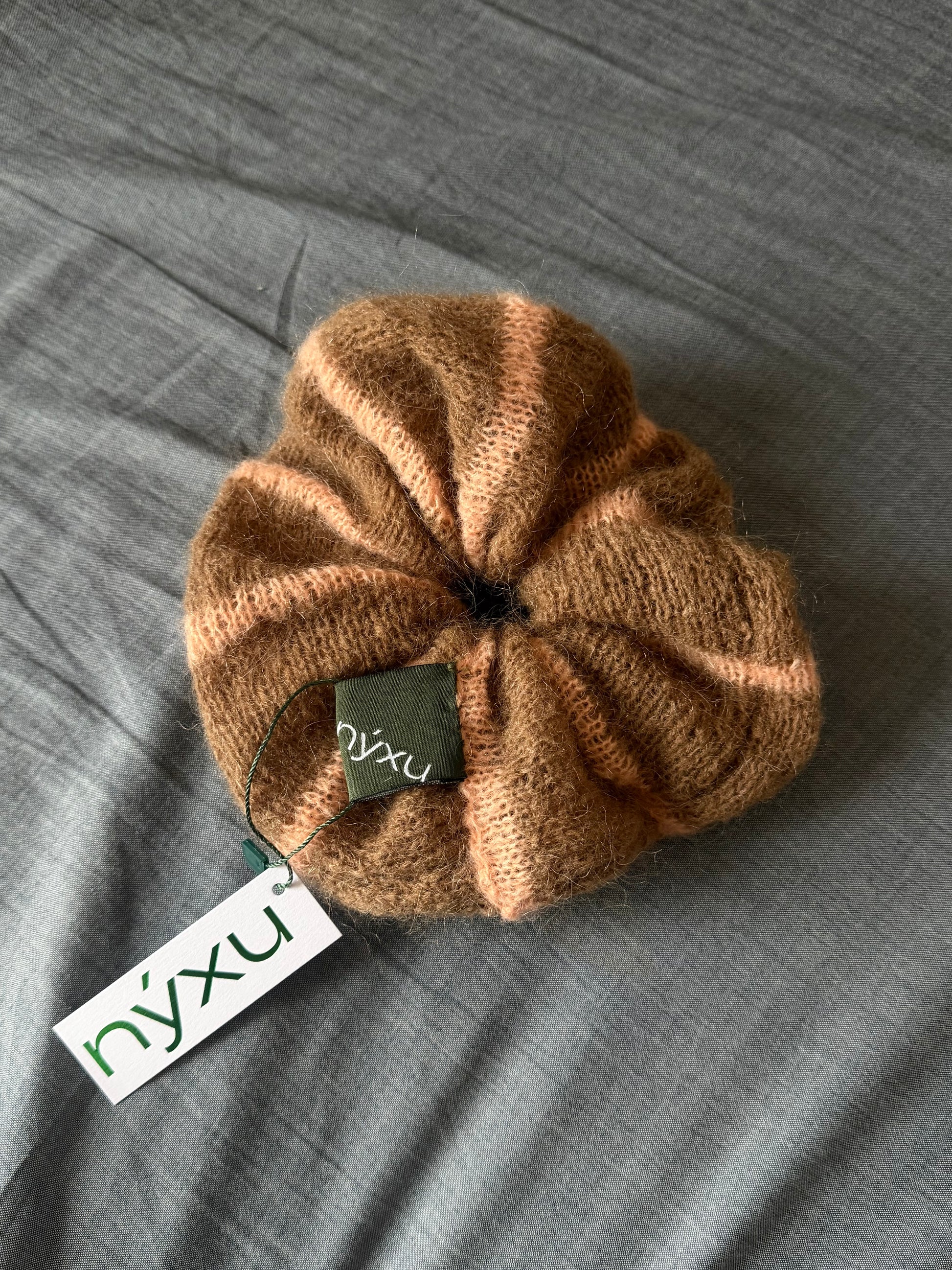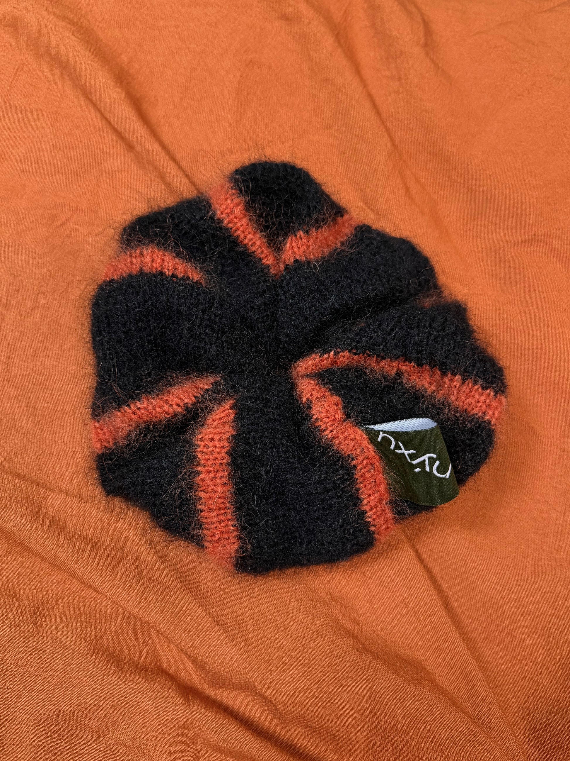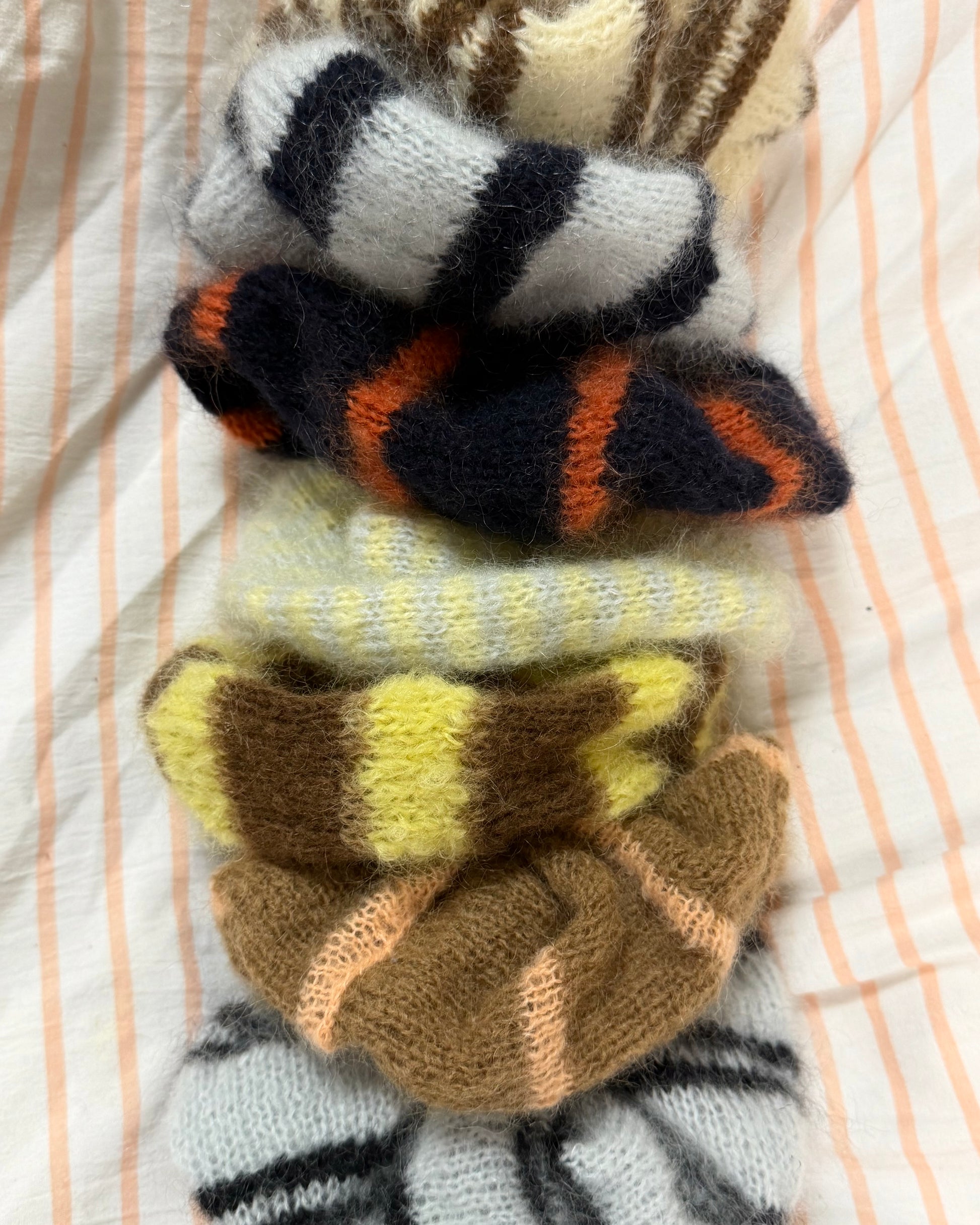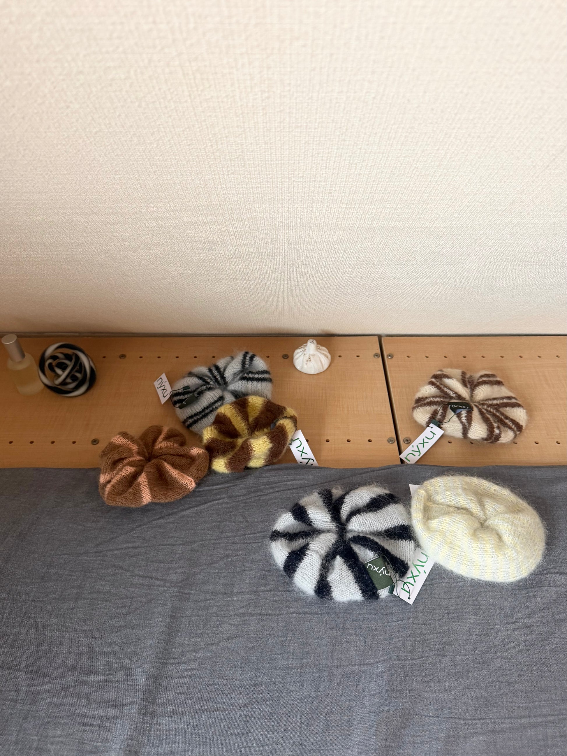 ナチュラルな風合いのボーダー柄で仕立てた、存在感たっぷりのビッグサイズシュシュ。