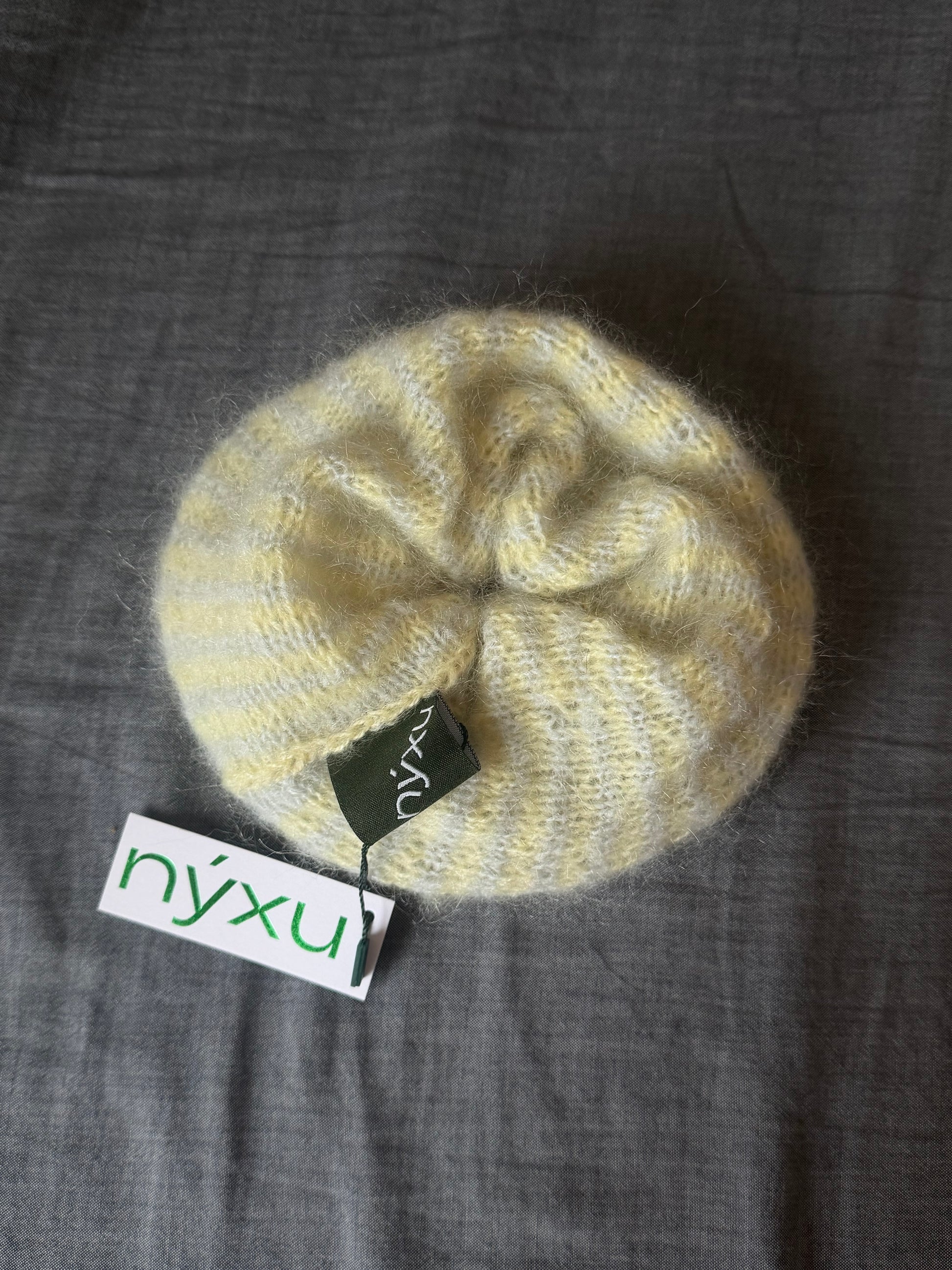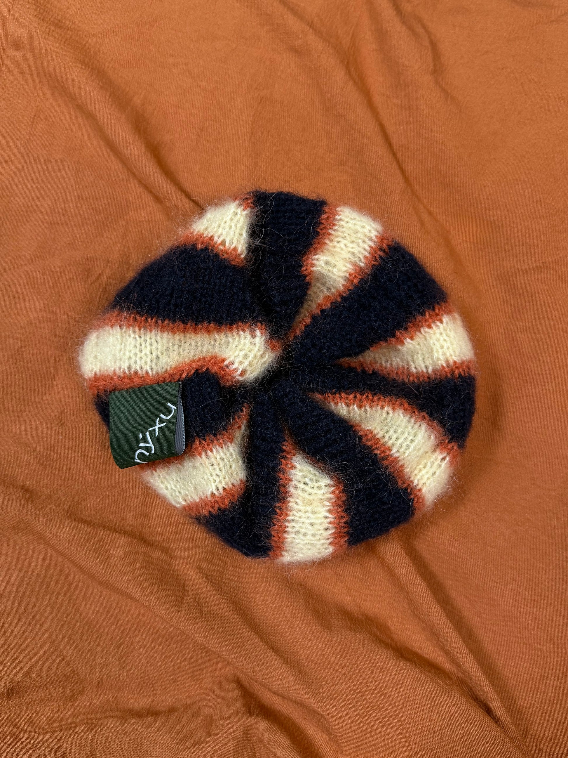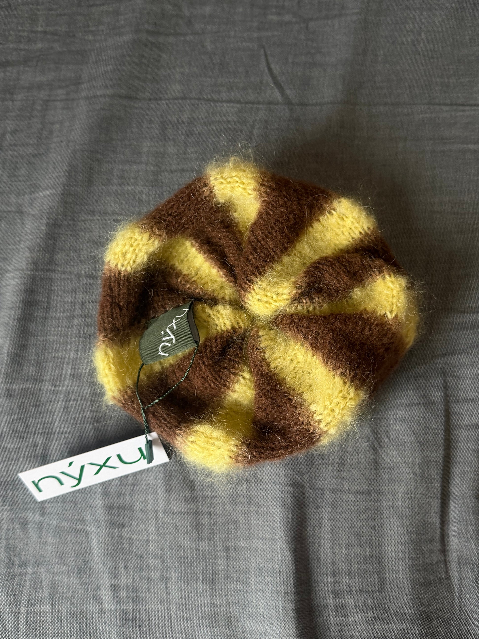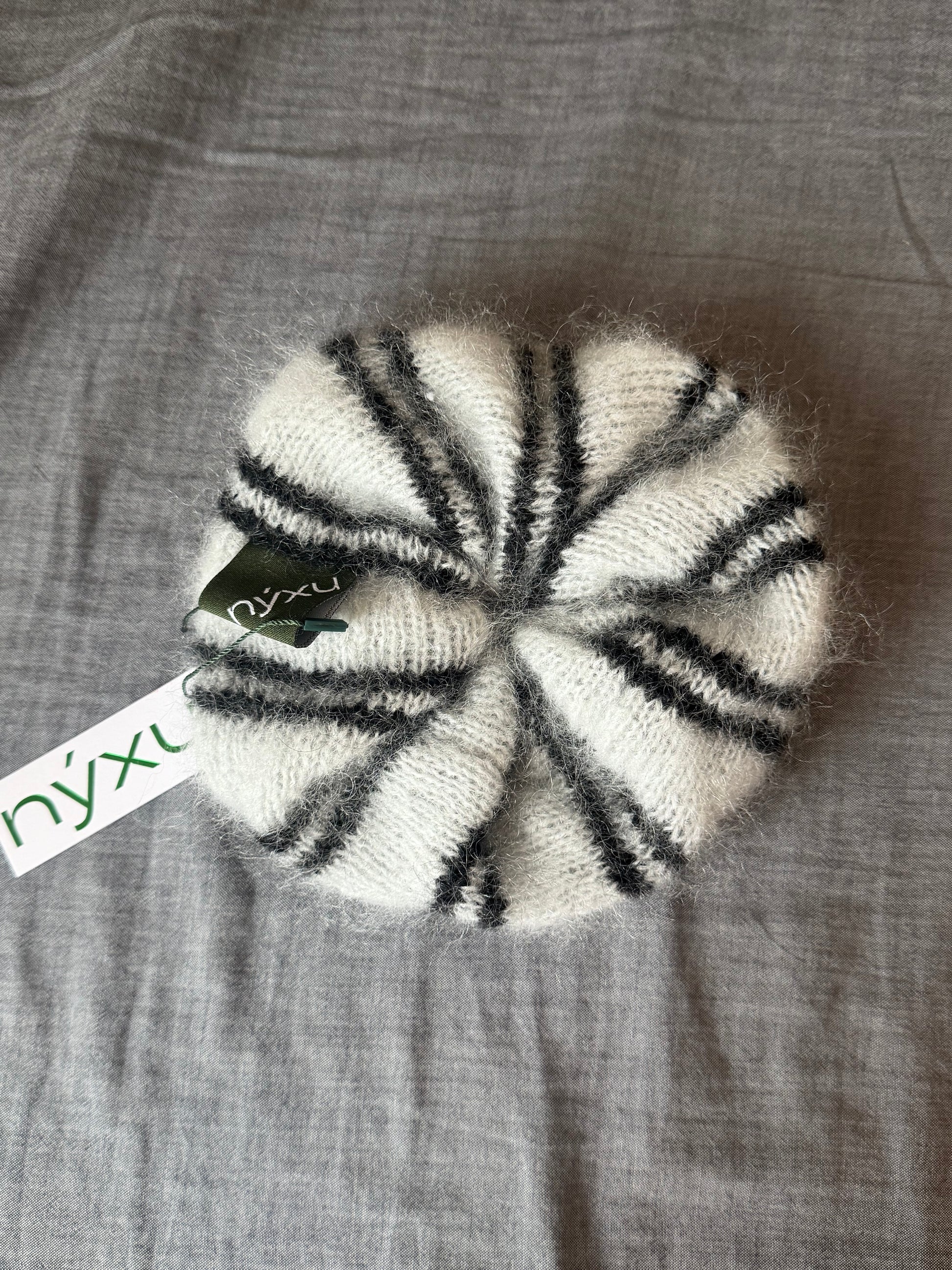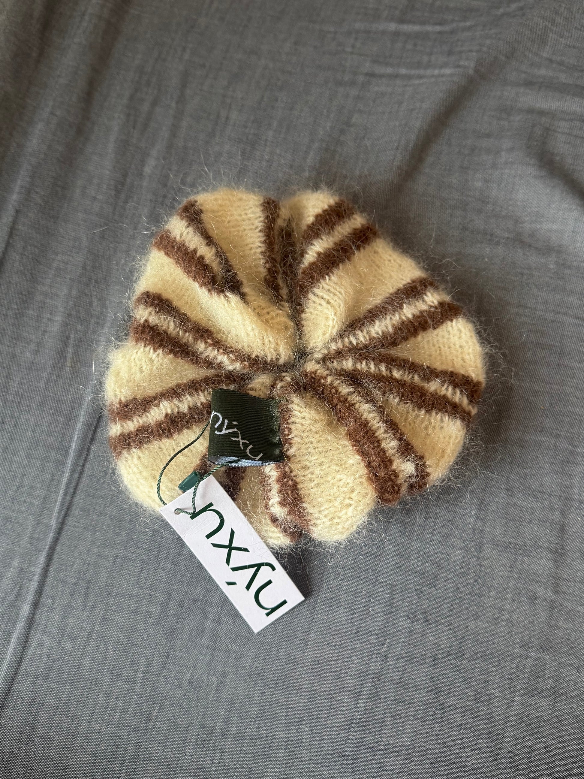 ナチュラルな風合いのボーダー柄で仕立てた、存在感たっぷりのビッグサイズシュシュ。