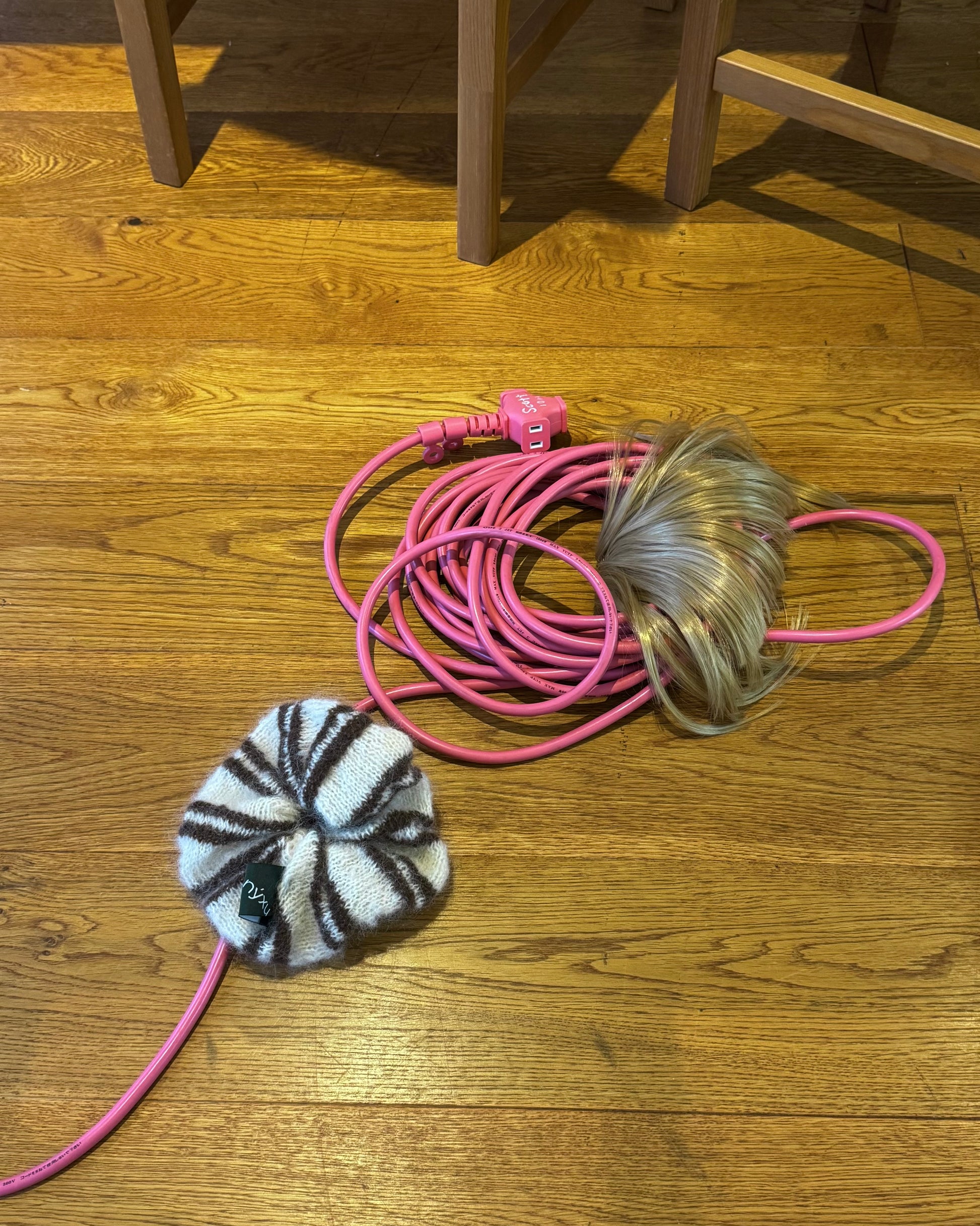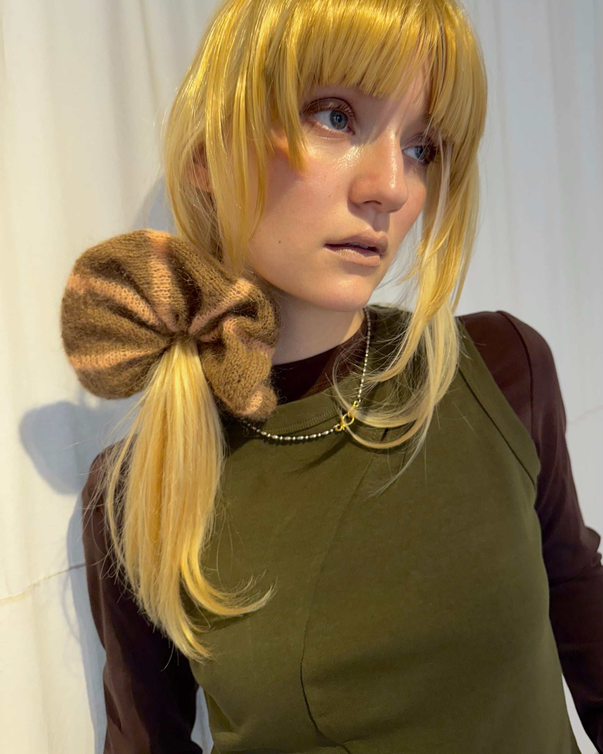 最初にお持ちのゴムで結んでいただいた後、シュシュを2周巻いていただく仕様です。
