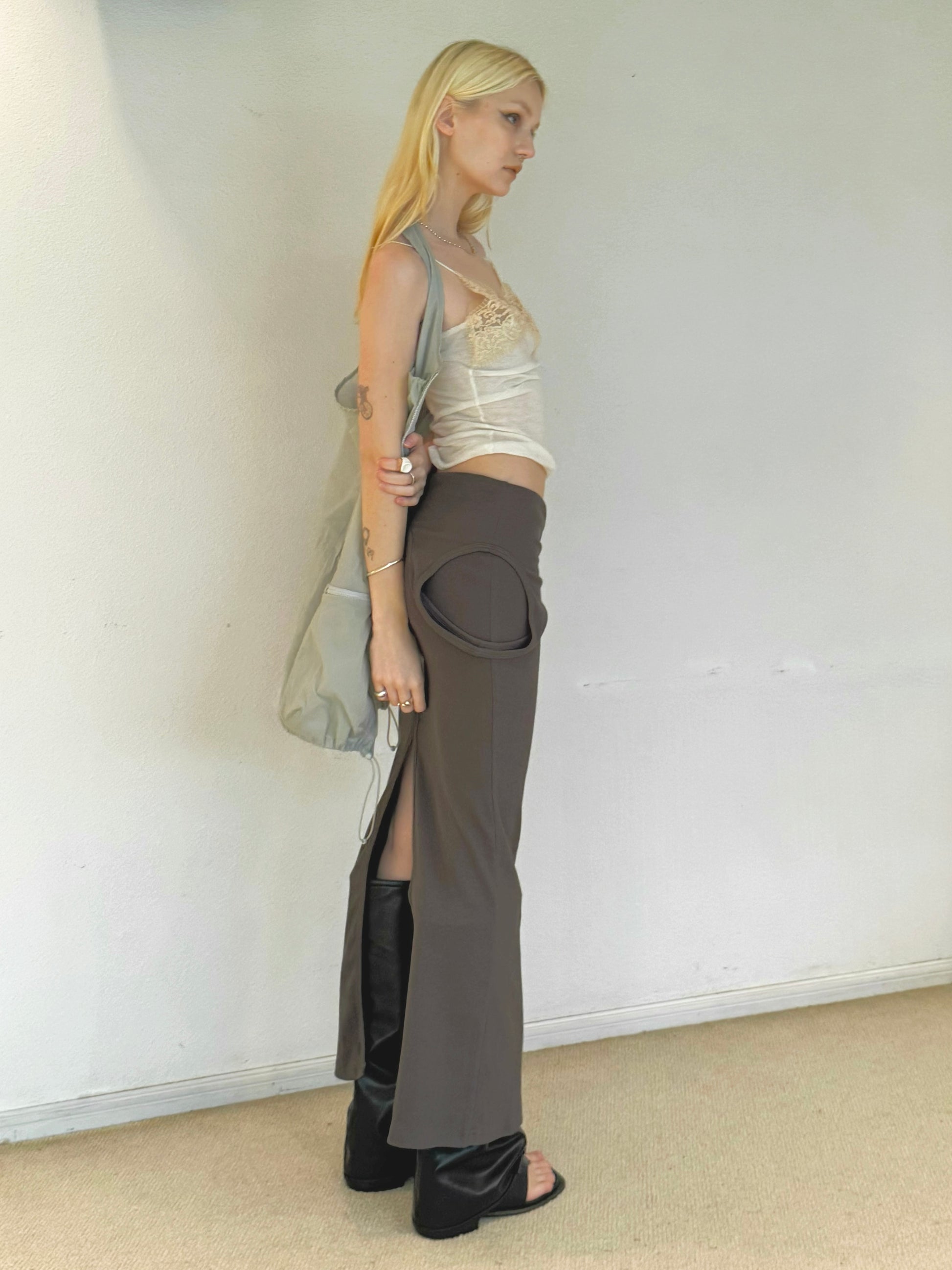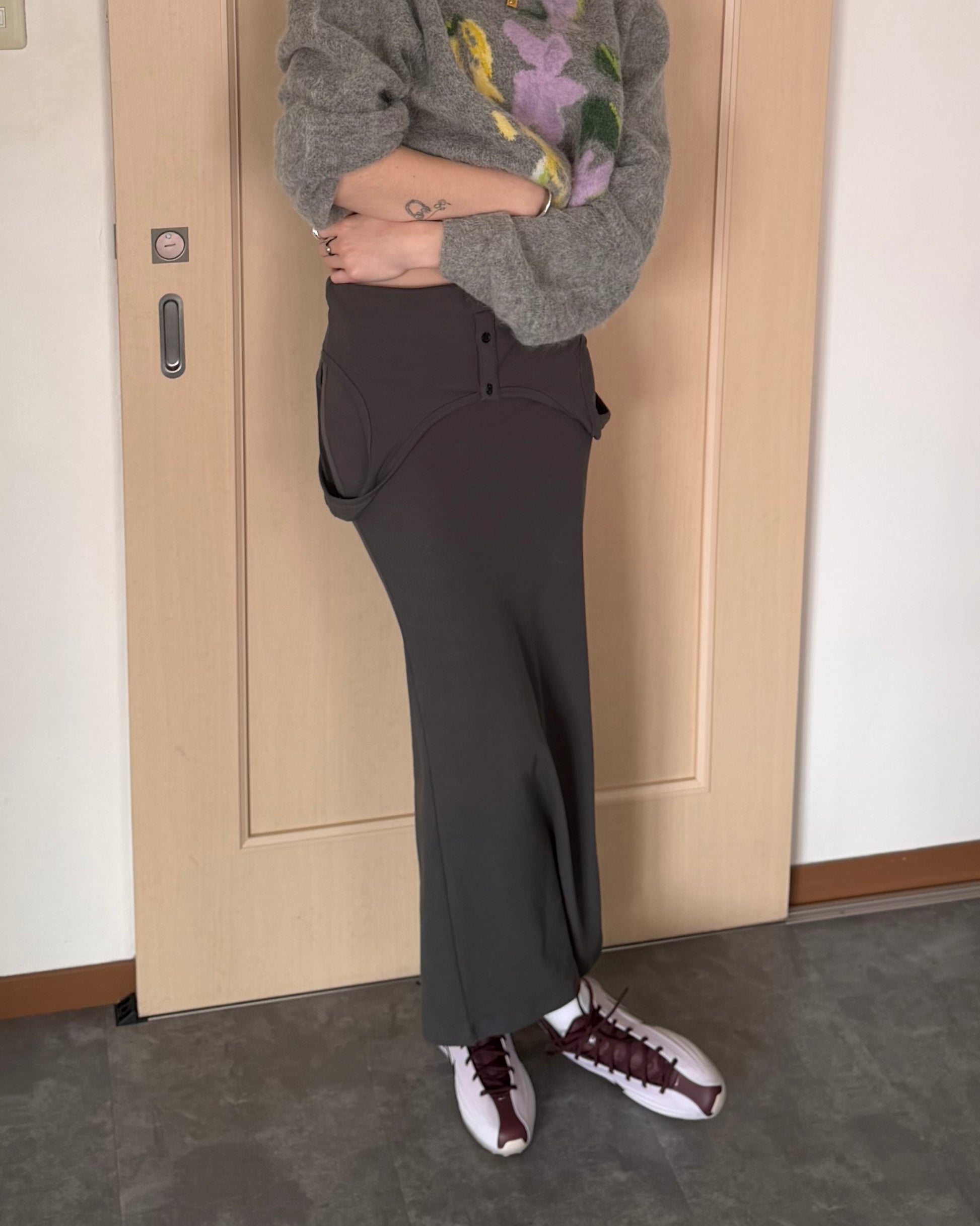 タンクトップをレイヤードしたデザインのペンシル型スカート。