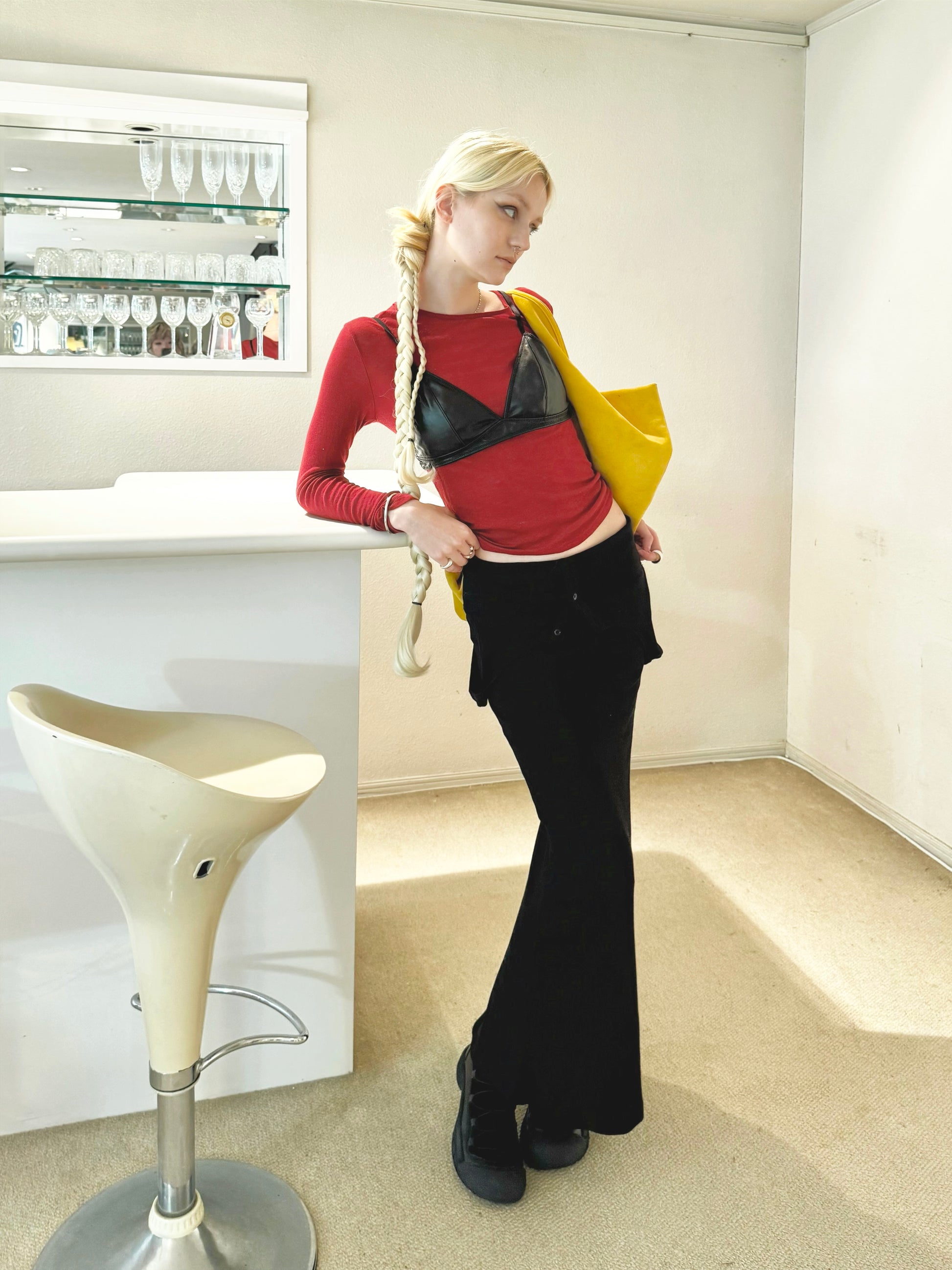 ストレッチのあるリブ生地で、スタイルアップ効果も抜群です。