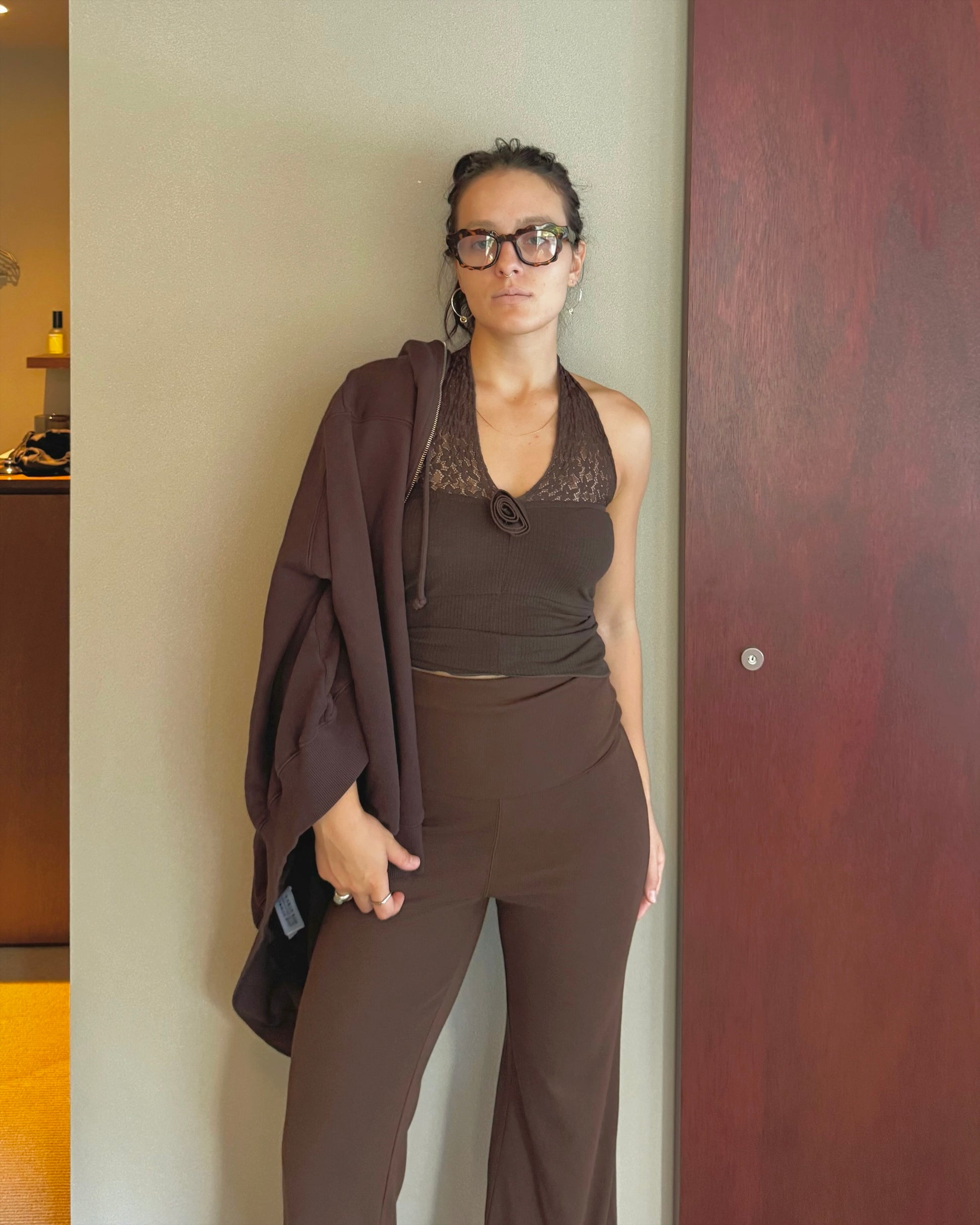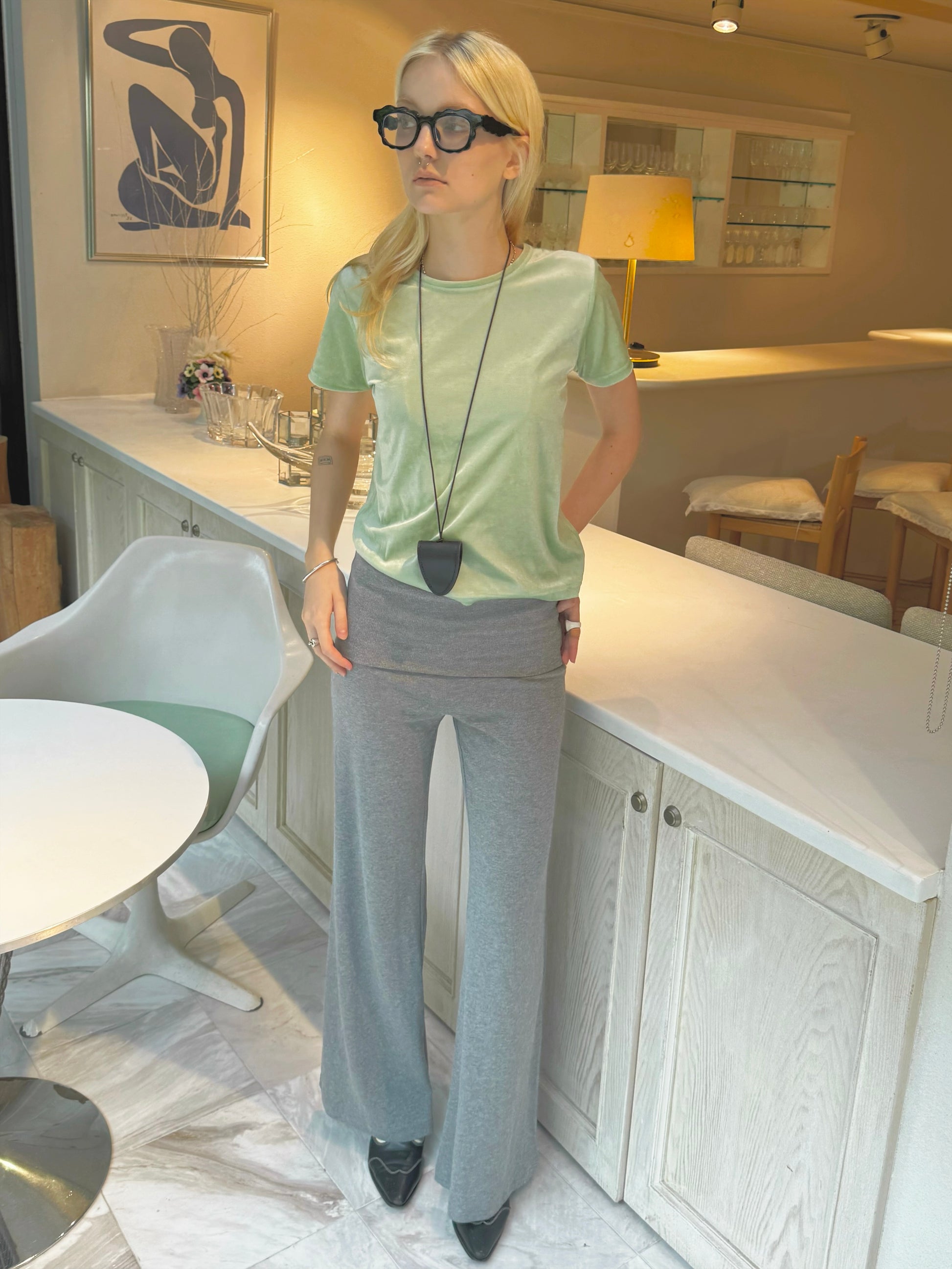 すとんと落ちるセンシュアルなラインと、ストレッチの効いた心地よい履き心地が魅力のスリムフレアパンツ。